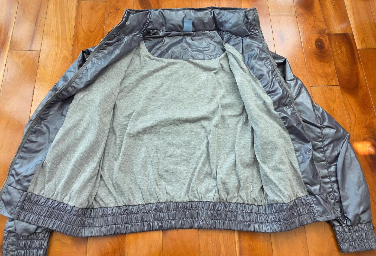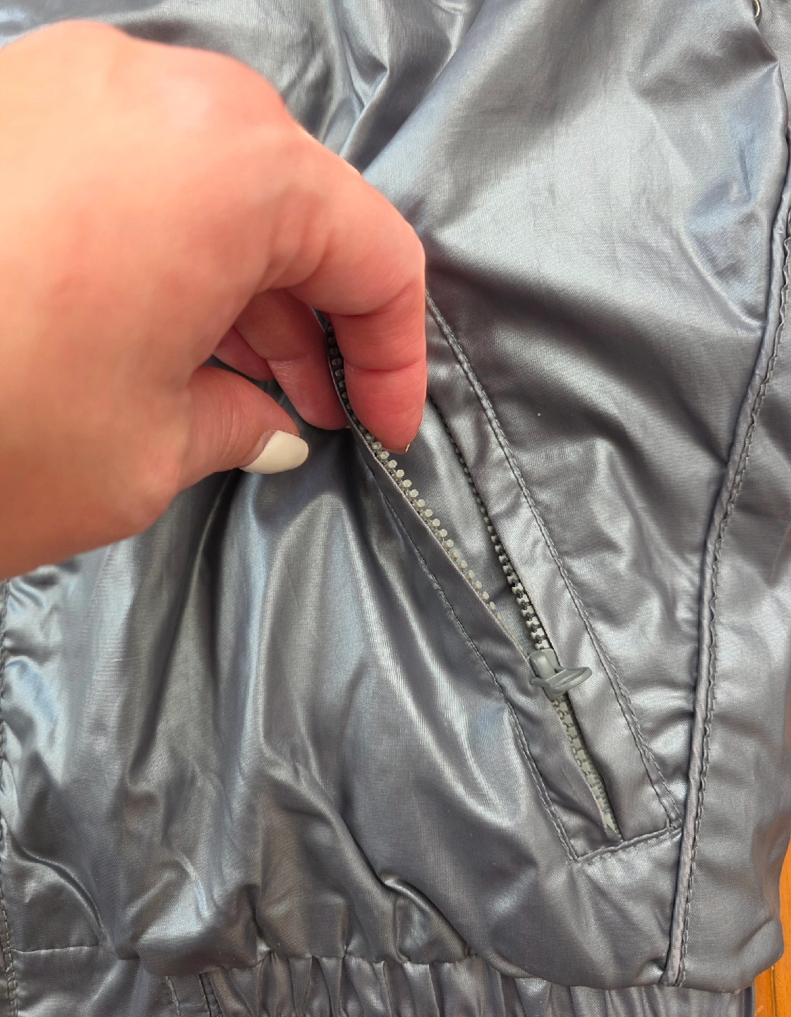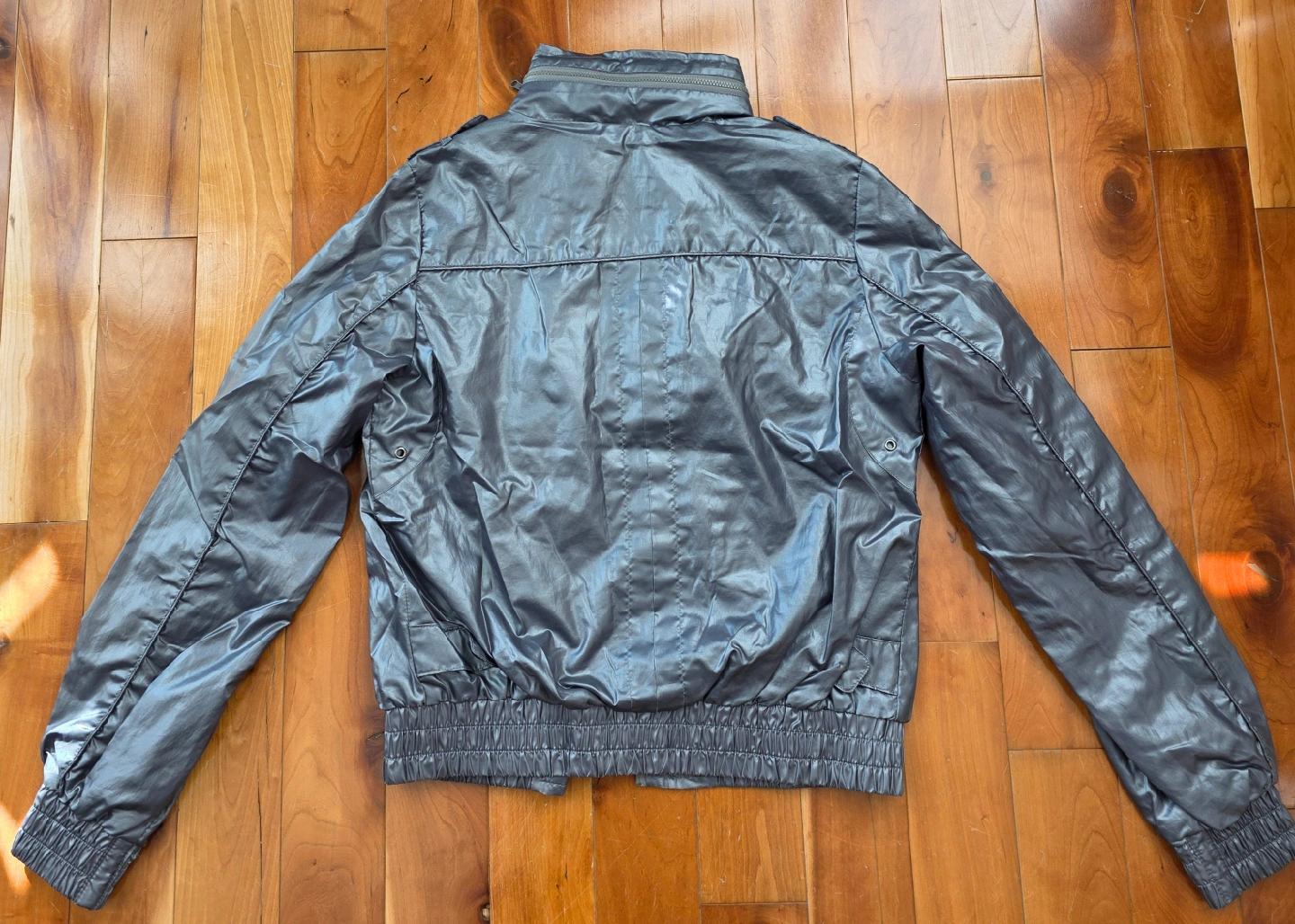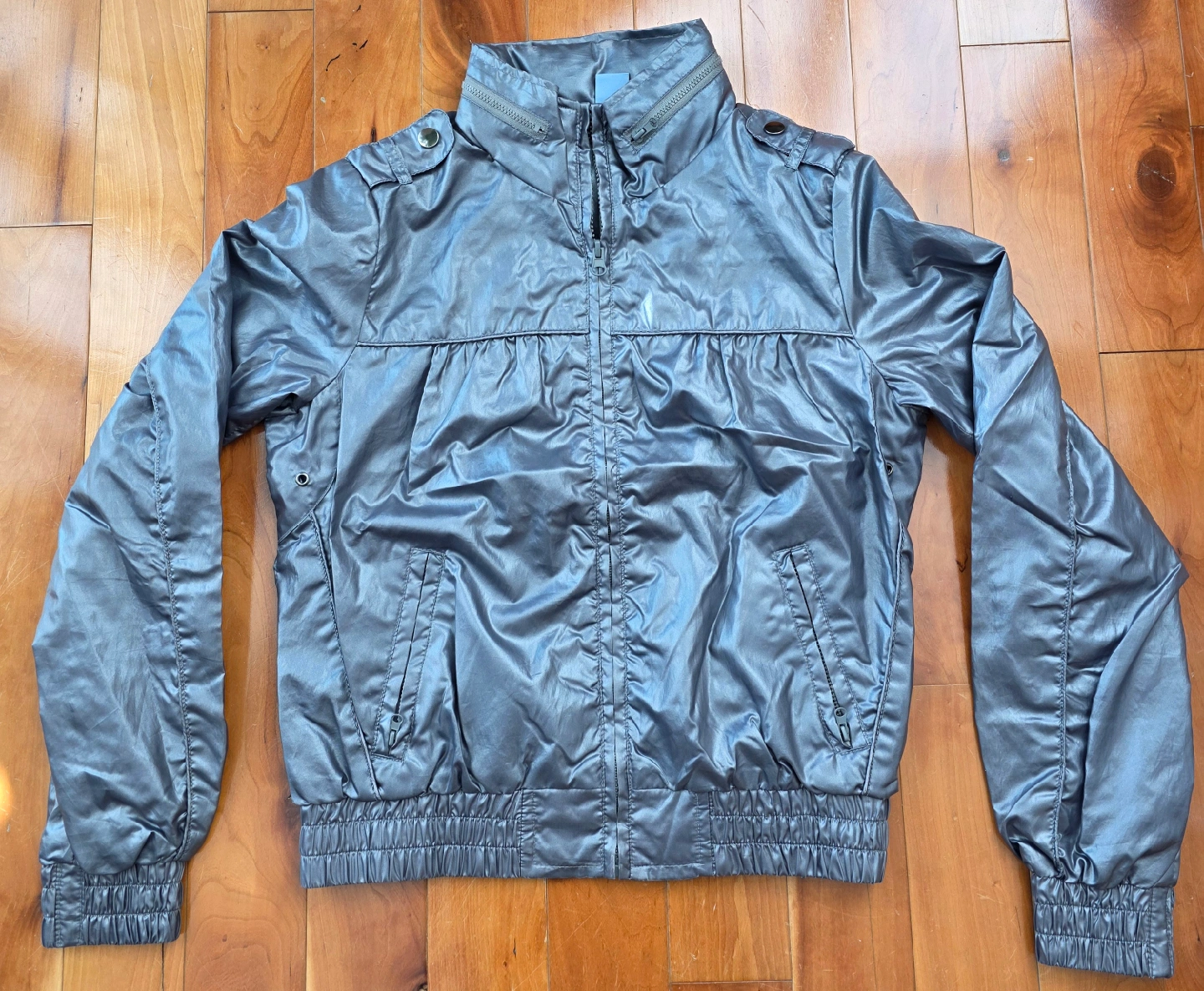 Silver bomber jacket. It's in great condition and perfect for adding a bit of shine to your wardrobe. Hidden hood and zippered pockets. Kids size L/XL also can fit adult XS/S