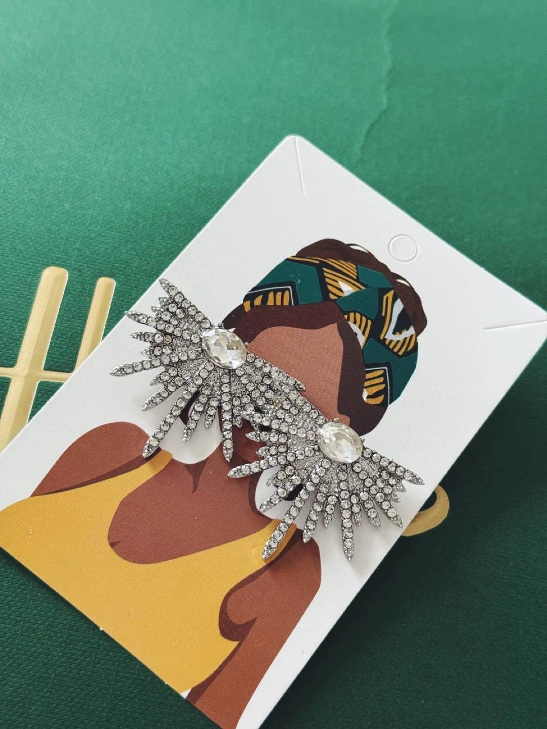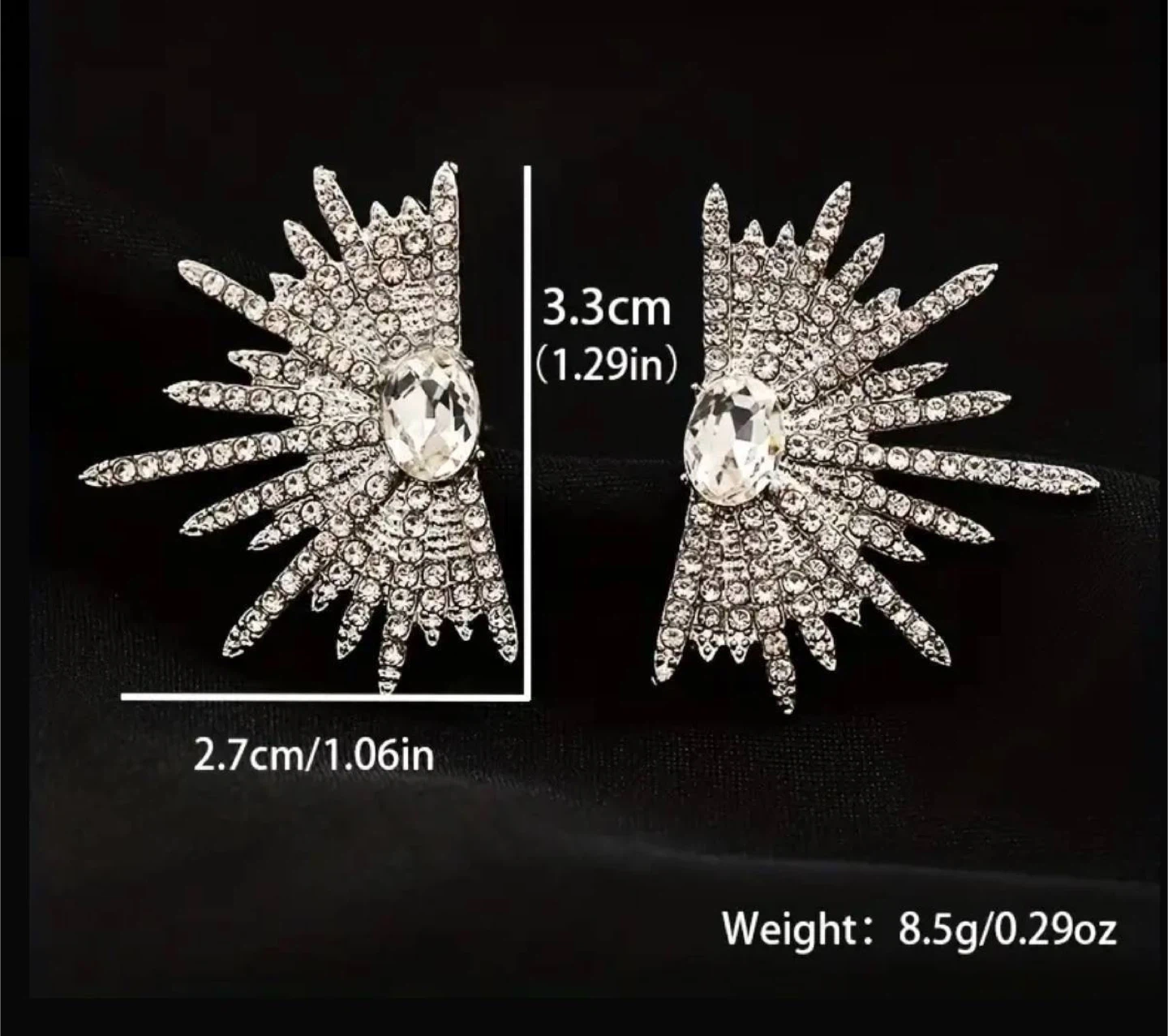 📍Quick pick up: • Near Dundas Station (3 min walk - new T&T) • St.George station • Sheppard West station ✅Description: New Gorgeous statement earrings. Silver-toned metal base. Adorned with sparkling crystals. Unique sunburst design. Perfect for adding glamour to any outfit.