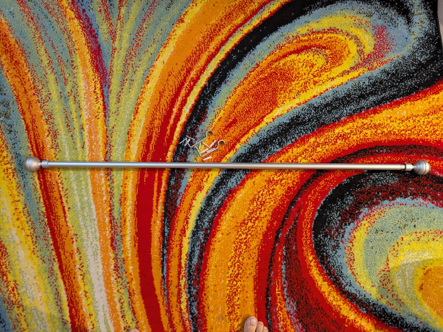 Selling a silver curtain rod, perfect for adding a touch of elegance to any room! It comes with all the necessary brackets for easy installation. It's in great condition and ready to use