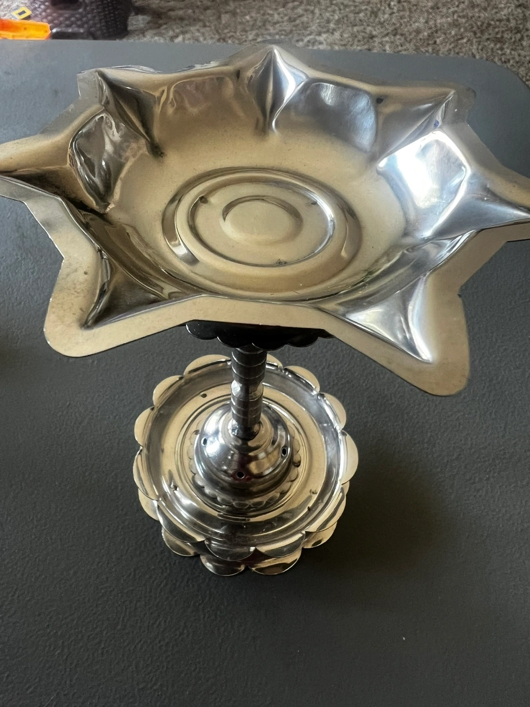 Selling a lovely silver decorative stand. It has a unique star-shaped bowl on top and a detailed base. Perfect for adding a touch of elegance to any room!