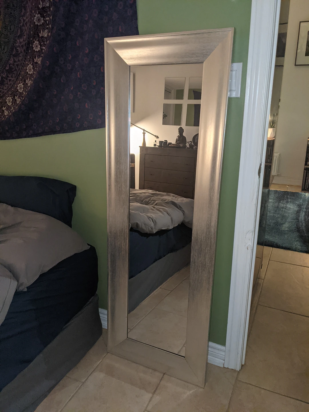 Silver Full Length Mirror. Wood frame. 55.5" x 19.5 ".