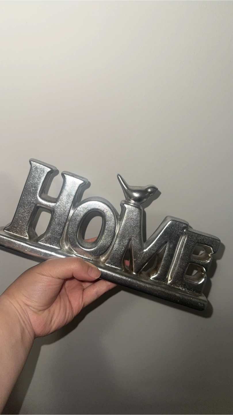 Add a touch of charm to your space with this silver 'Home' decor piece! It features a cute little bird perched on top, making it a sweet addition to any room