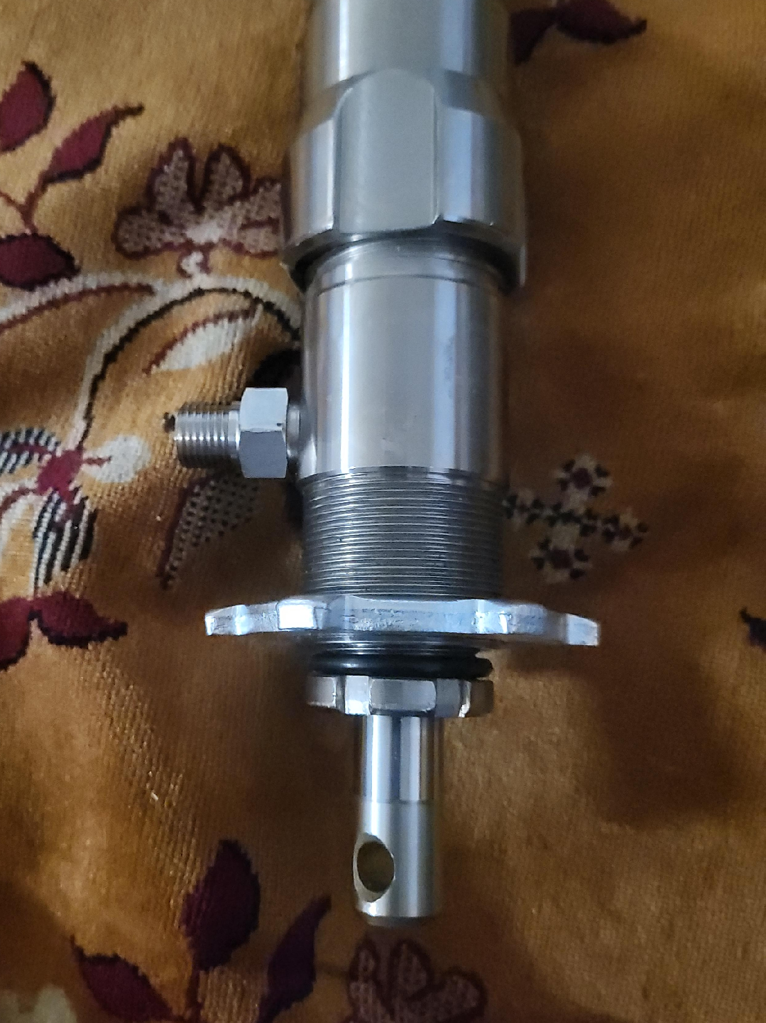 Selling a silver hydraulic cylinder. Appears to be in good condition and ready for use