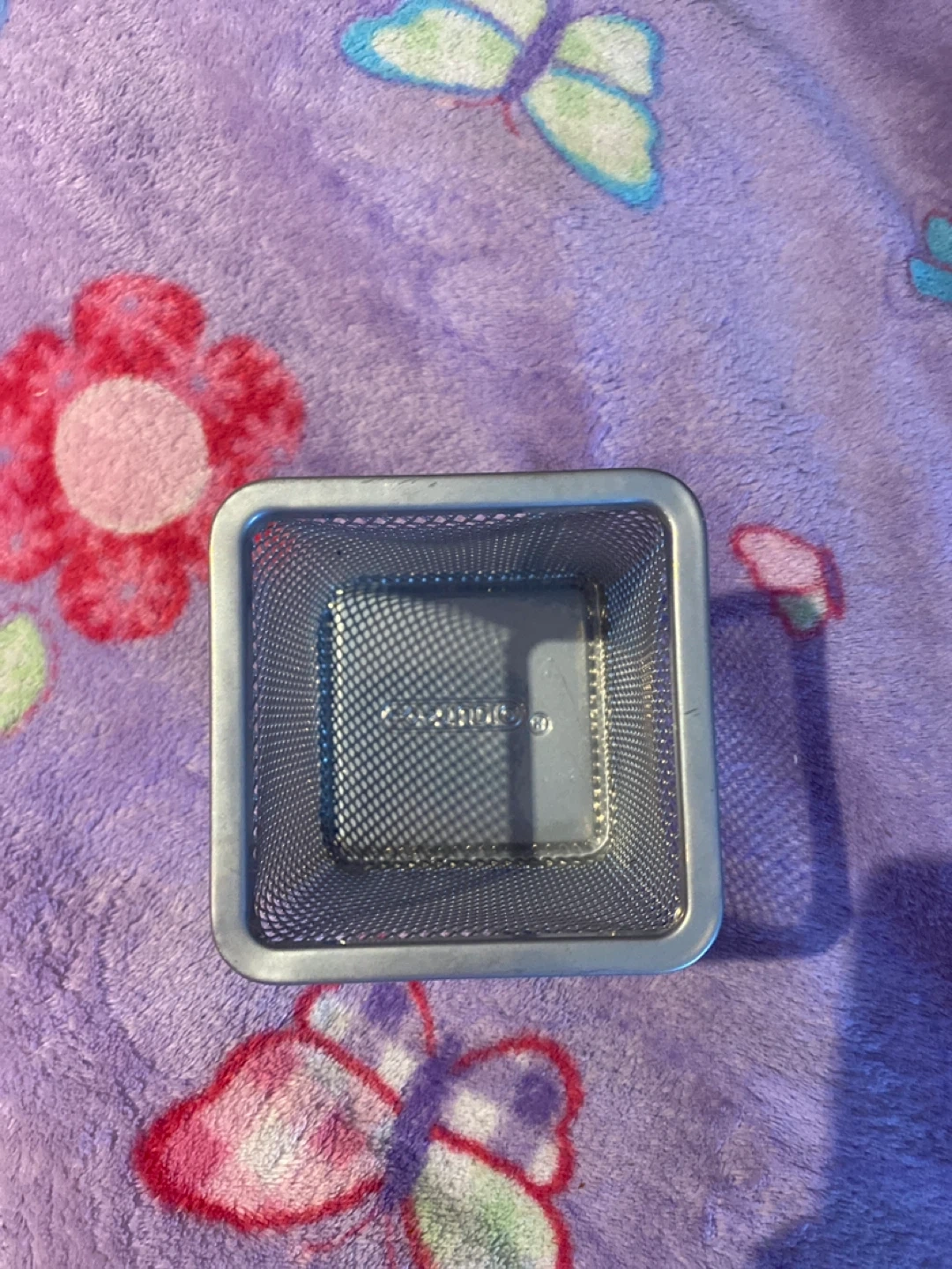 Here's a handy silver mesh desk organizer! It's perfect for keeping your pens, pencils, and other small items tidy on your desk or workspace