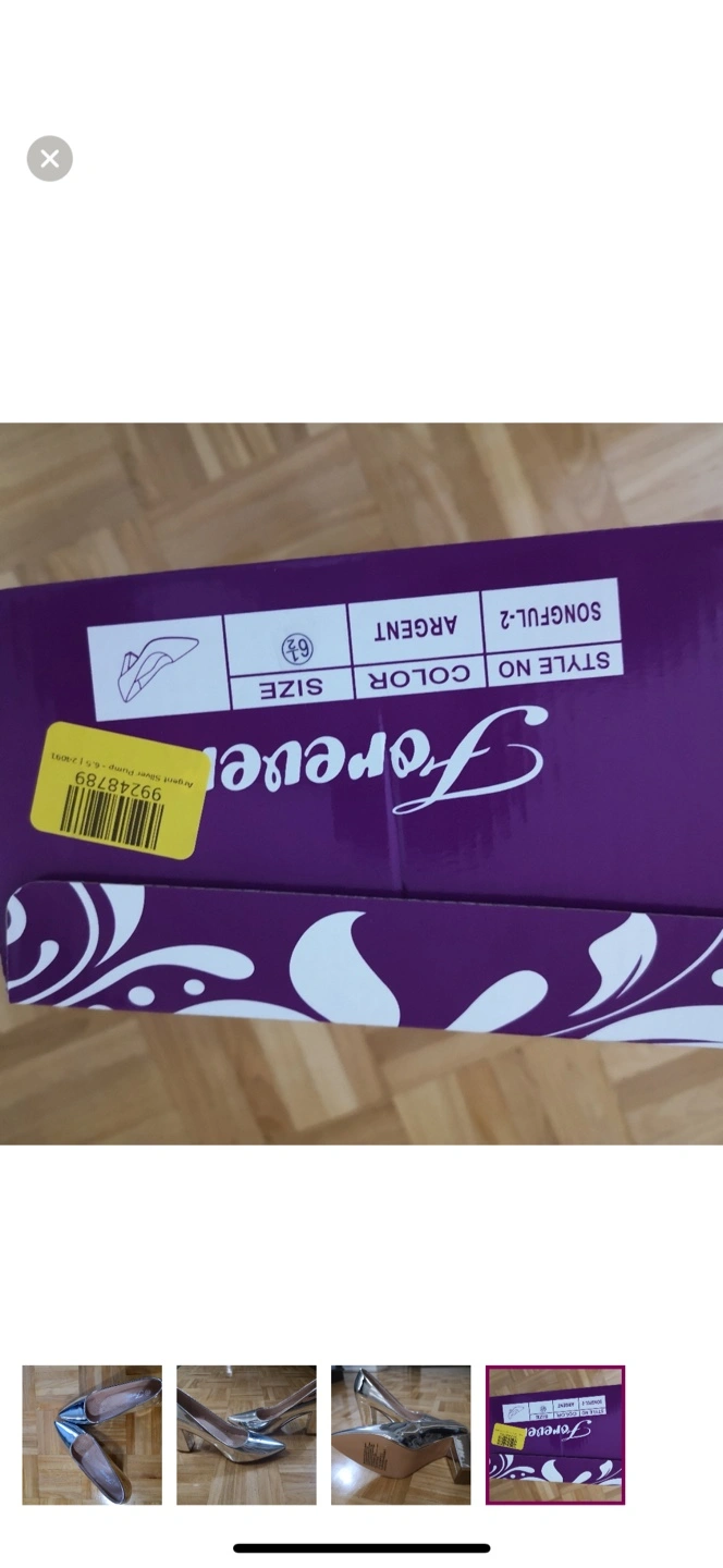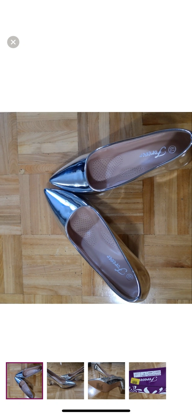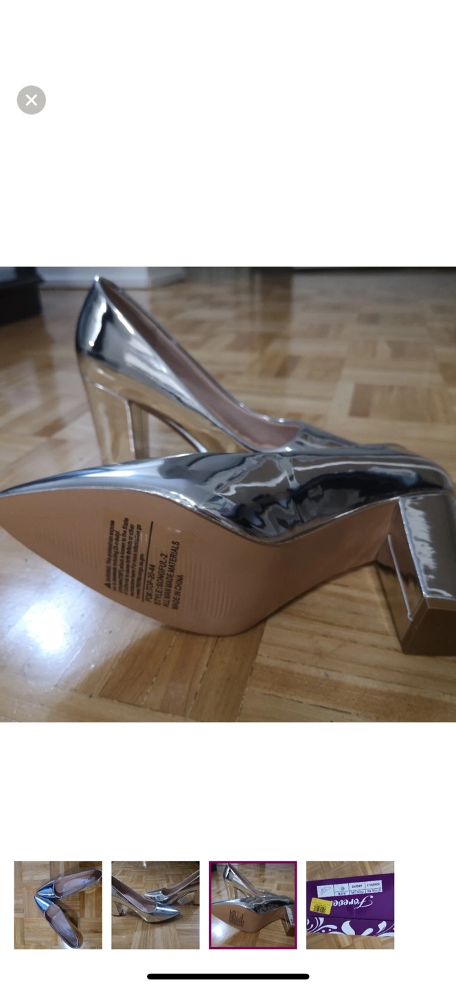 Stylish silver metallic heels. Pointed-toe design. Block heel. Brand new in box, never worn.