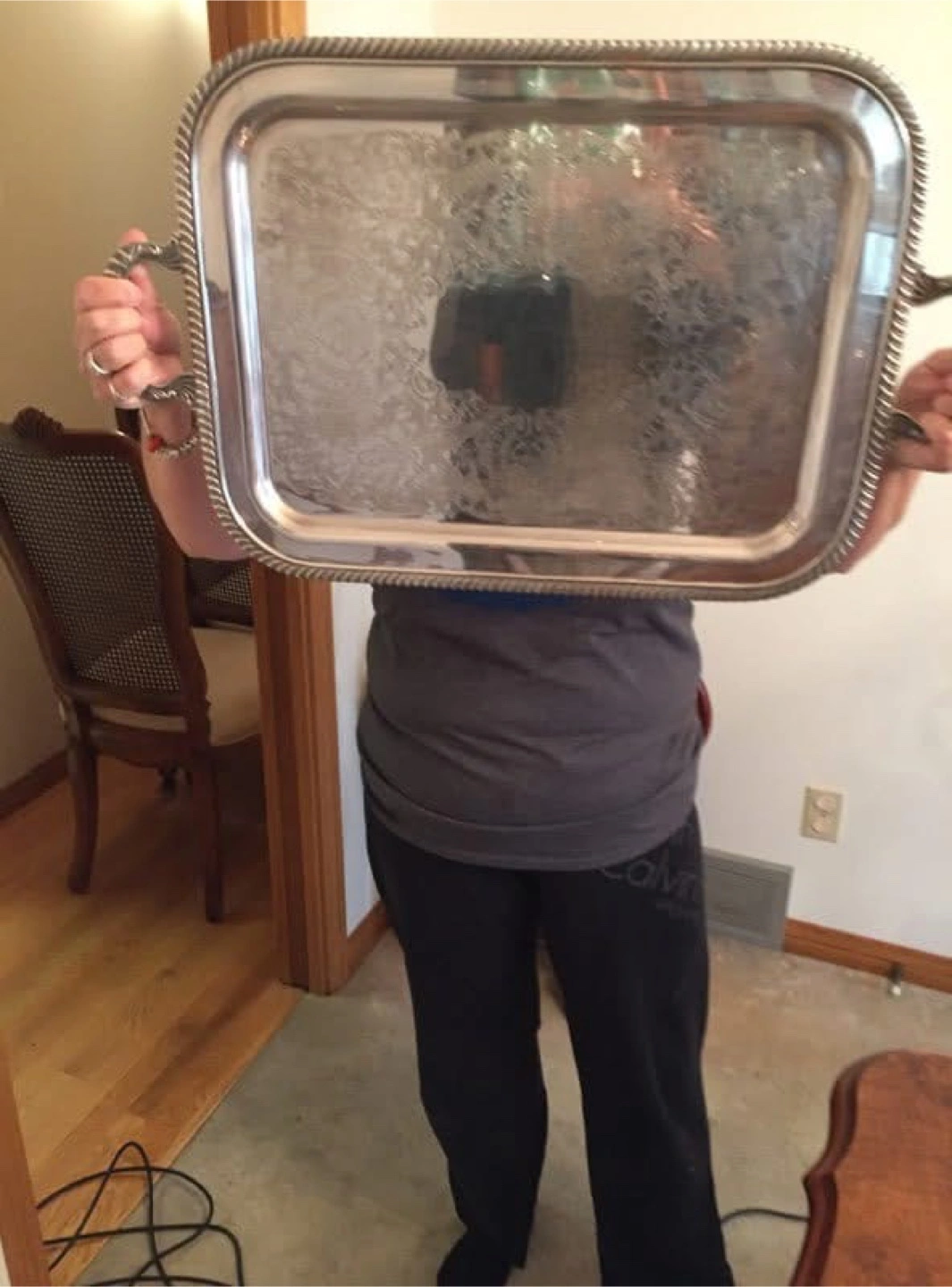 Selling a lovely silver-plated serving tray with decorative handles! It's perfect for serving drinks or snacks at your next gathering. It's in good condition and ready to find a new home