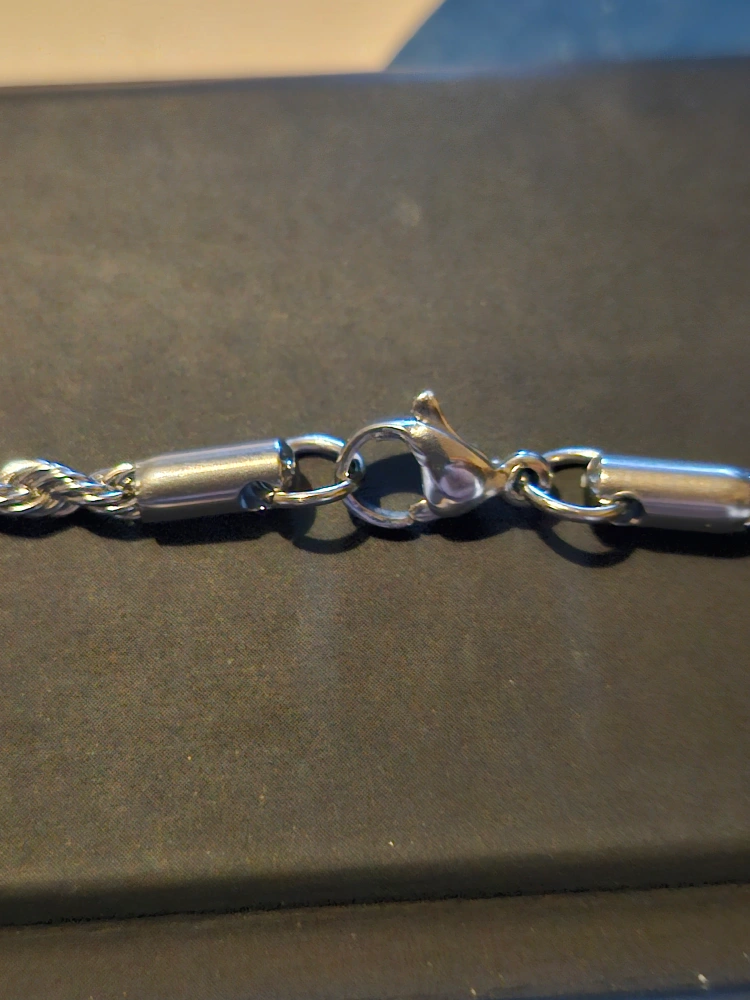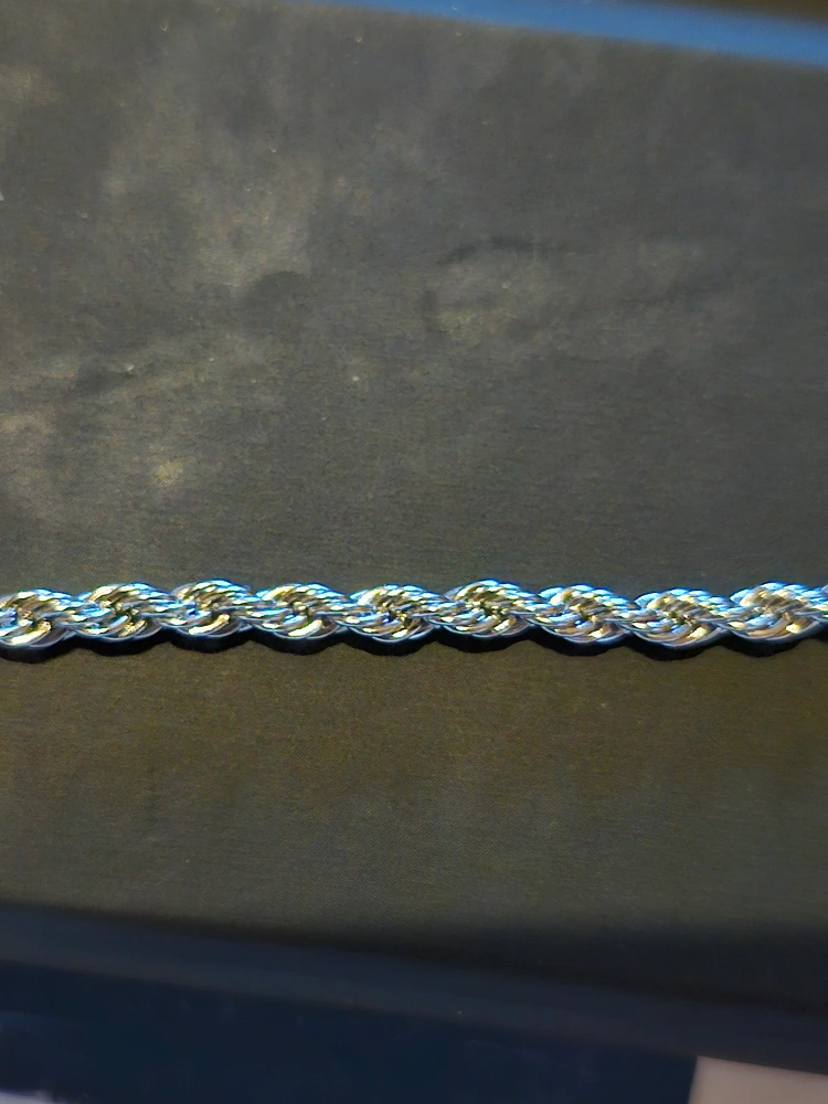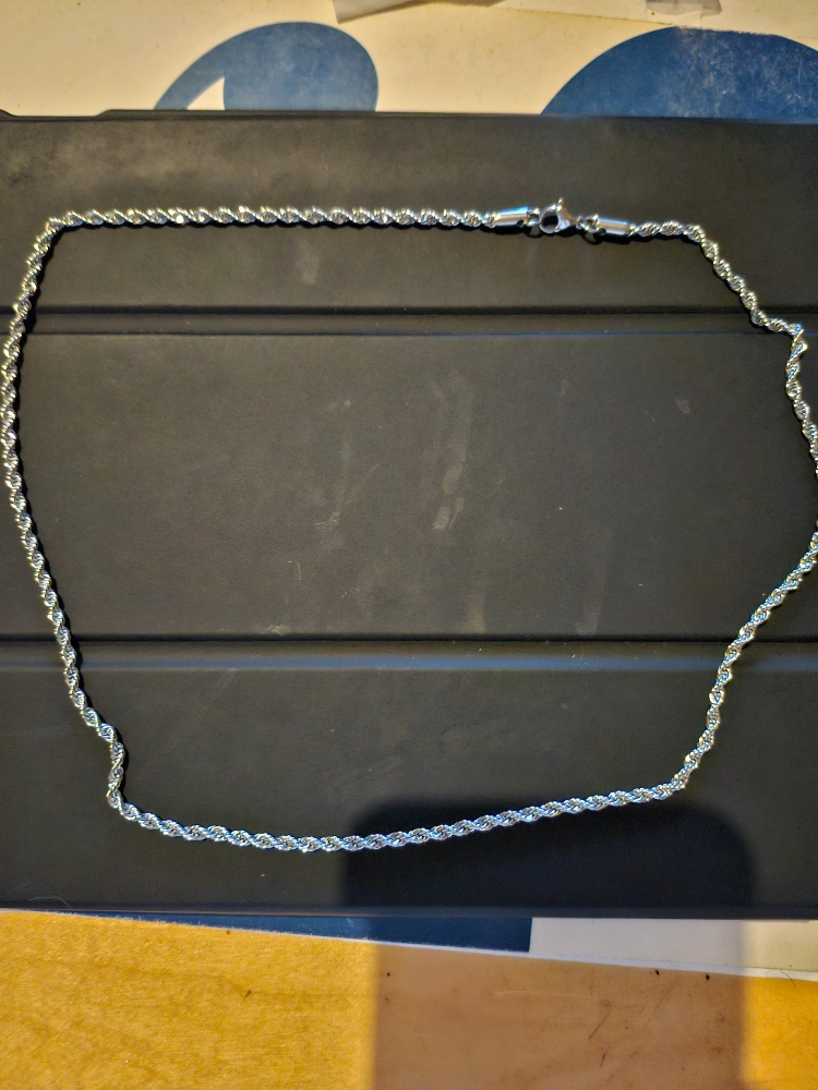 Selling a nice silver rope chain necklace. It's in new condition and ready to add some shine to your outfit! 22 inches. .407 oz