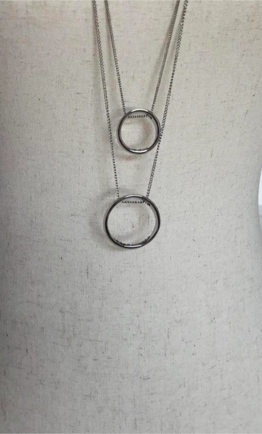 🧡Silver Tone Double Circle Pendant Necklace