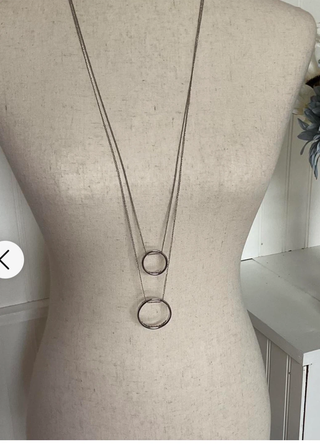 A stylish silver-tone necklace featuring a double circle pendant. This necklace is a great addition to any outfit, adding a touch of modern Double Silver-Tone Circle Long Necklace Torrid....New- without tags This stunning silver-tone necklace features a unique design of two interlocking circles, creating a modern and stylish piece that is perfect for any occasion. It is a great addition to any jewelry collection and is sure to make a statement. • Lobster clasp • Short necklace: 29" long • Long necklace: 32" long with 5" extender • Base metals New without tags/label Believe this gorgeous piece is by Torrid