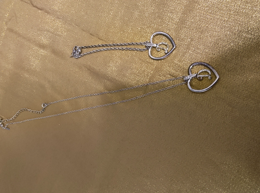 Selling these cuteSilver-Tone Heart with Rhinestone Initial Charm Necklace and Bracelet! They're in great condition. Perfect for adding a touch of sparkle to any outfit!