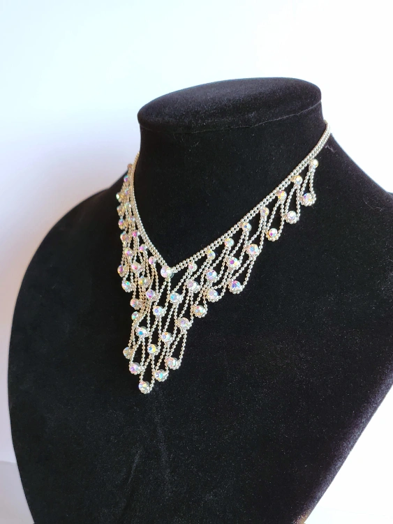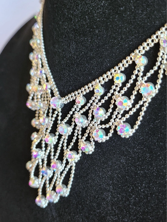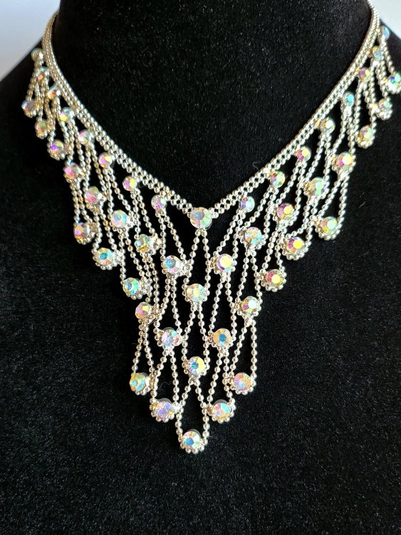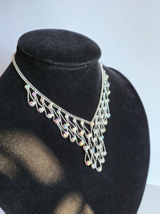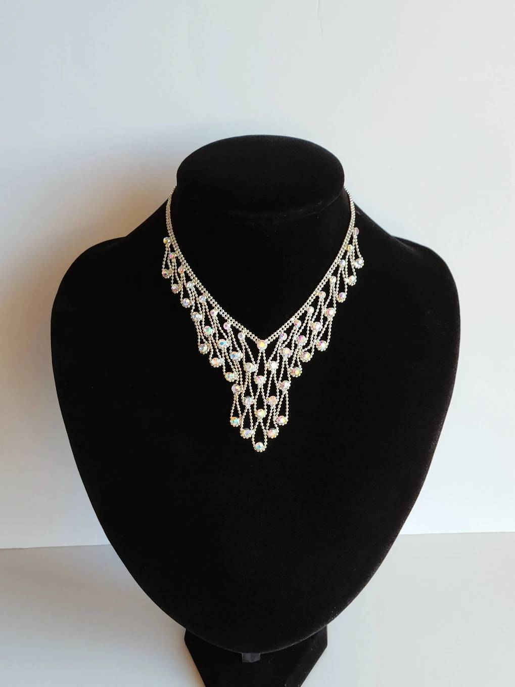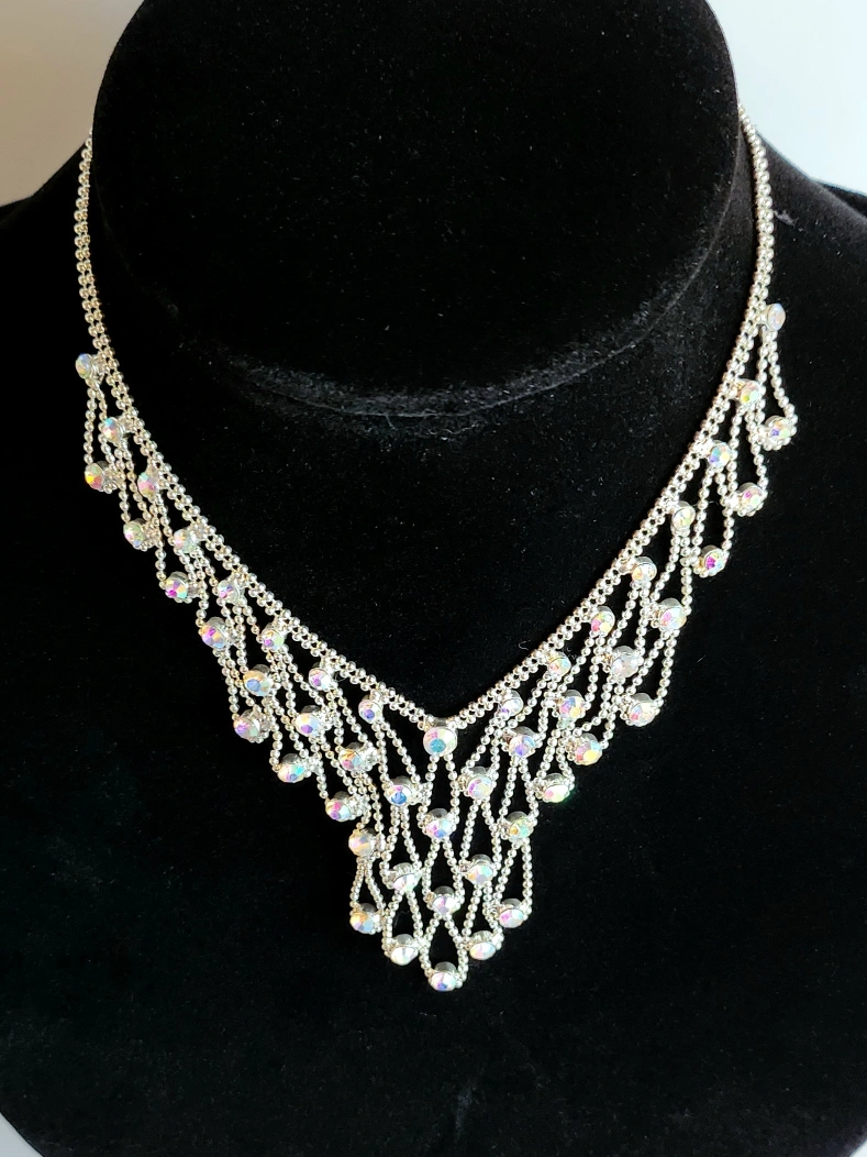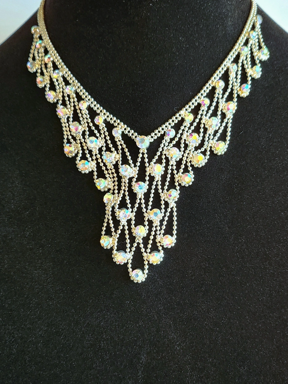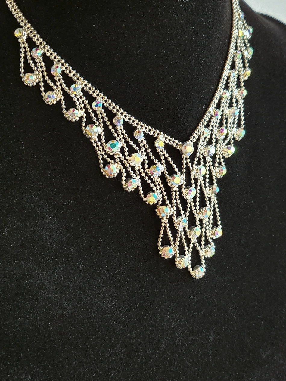 Silver Tone Iridescent Rhinestone Collar Necklace