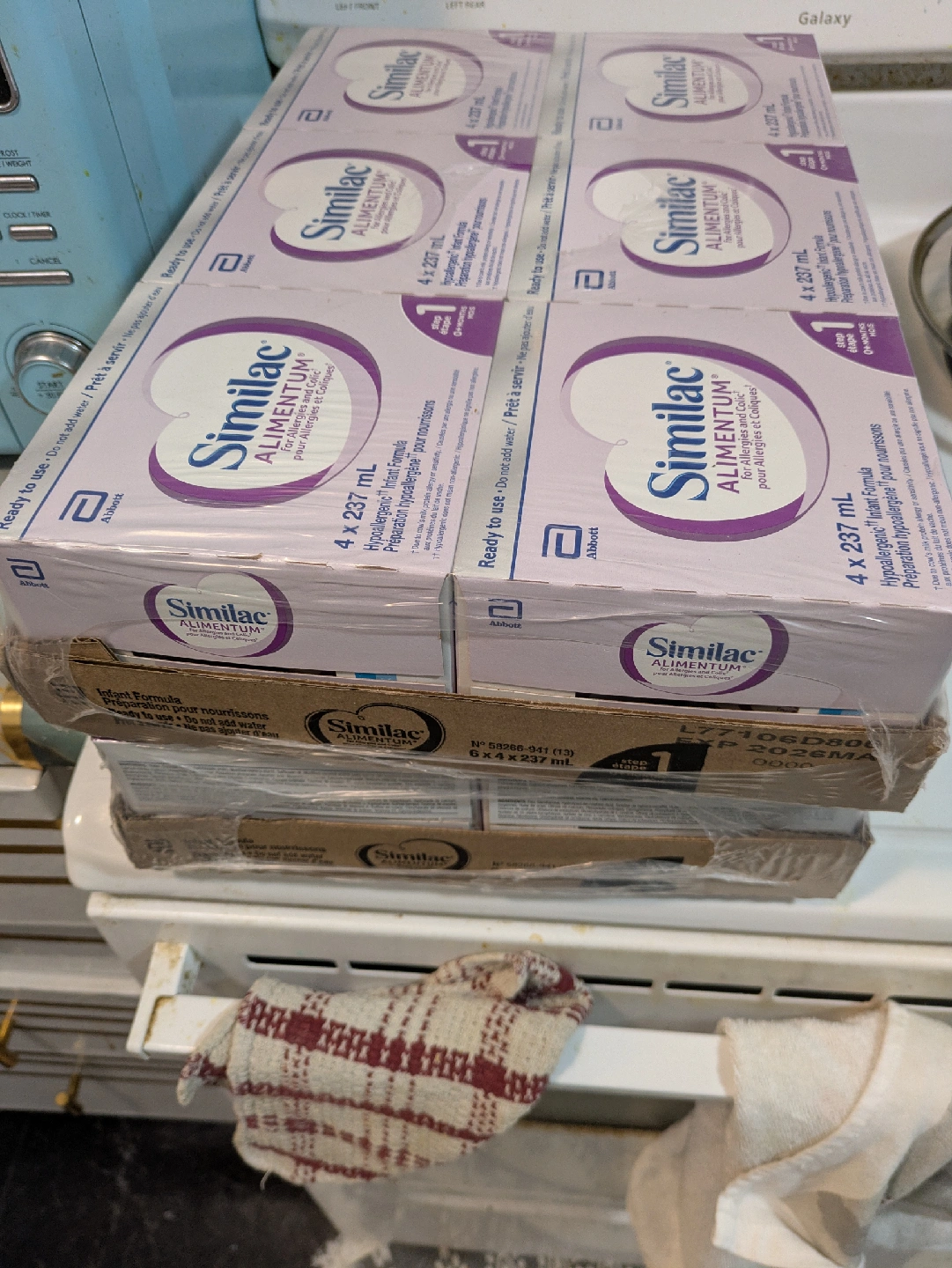 Selling a new case of Similac Alimentum infant formula. Each pack contains 24 bottles, 237mL each. Expiration Date: 2026 May 01