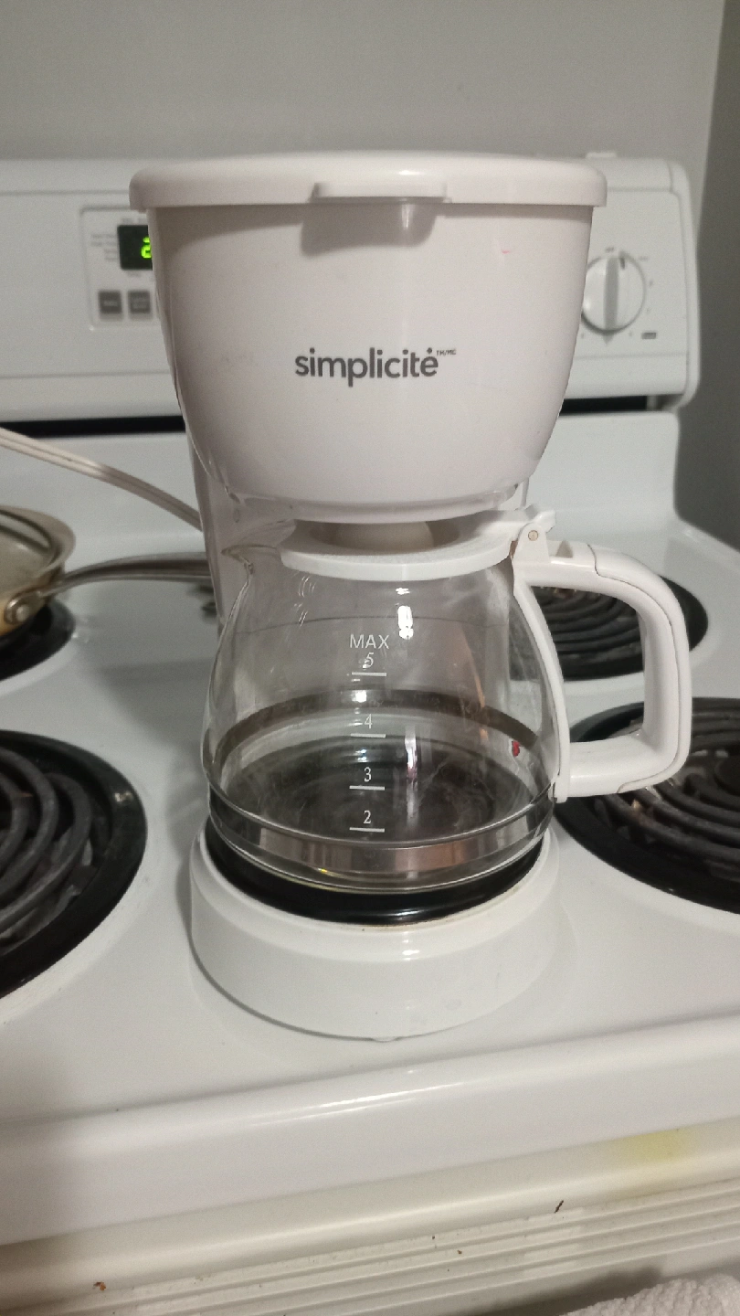 Selling a Simplicité Home coffee maker. It comes with the glass carafe and filter basket. It's in great condition and ready to brew your morning coffee! Brews 5 cups, perfect for single or couples use!