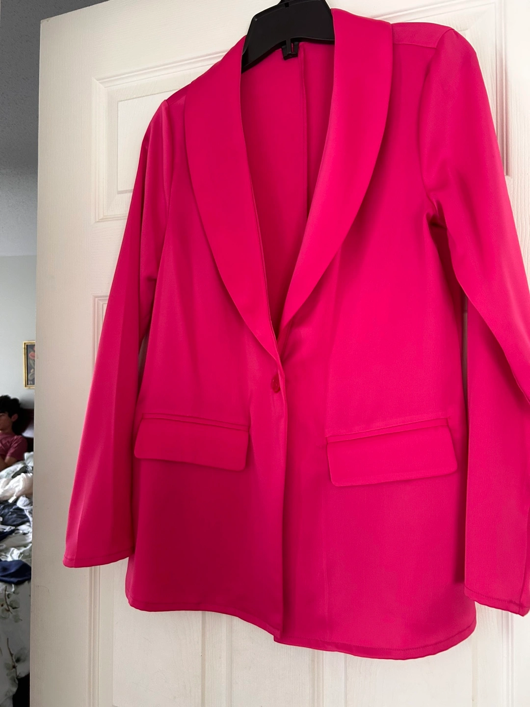 Selling a vibrant pink blazer. It's a size small and in excellent condition. Perfect for adding a pop of colour to your wardrobe!
