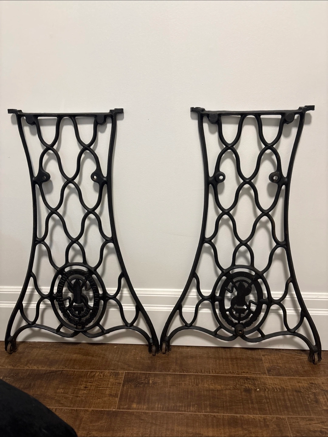 Selling a pair of vintage Singer sewing machine legs. They're made of cast iron and have the classic Singer logo. Perfect for a DIY project or adding a unique touch to your home decor! Add a top to it for a unique table. **$45 firm** for the pair. No HOLDS and pick up only.