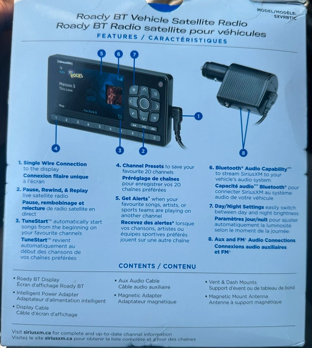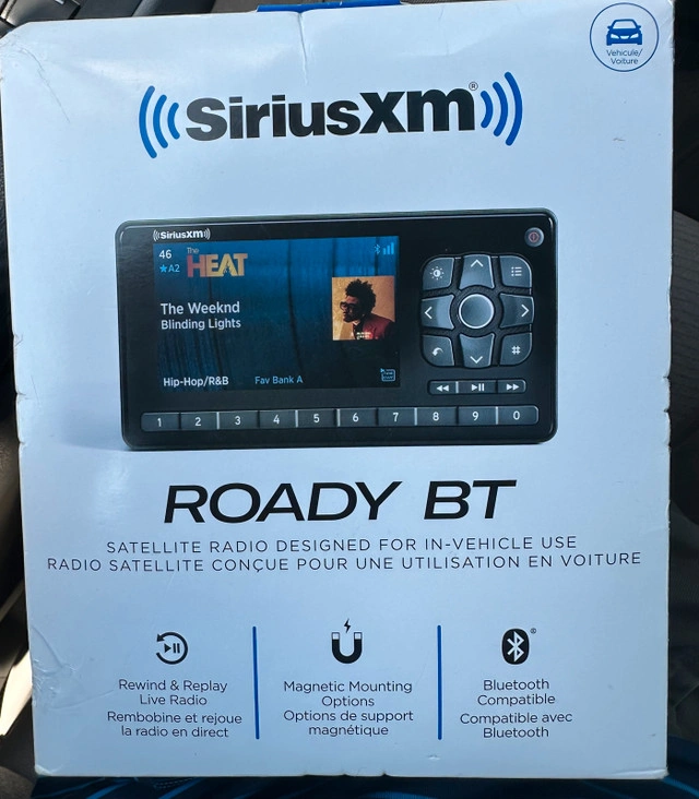 Enhance your car audio experience with the SiriusXM Roady BT satellite radio, designed for in-vehicle use and still in its original packaging! This unit allows you to enjoy a wide variety of music, sports, talk, news, and comedy directly in your car. Key Features: * Bluetooth Audio Capability to stream SiriusXM to your vehicle’s audio system. * Rewind & Replay Live Radio * Magnetic Mounting Options for versatile placement. * TuneStart™ feature that automatically starts songs from the beginning. Looking at Kijiji and other online marketplaces, similar used satellite radios are typically listed between $50 and $100 CAD. Given this unit is new, I've priced it competitively. If the ad is up, yes, it's still available!