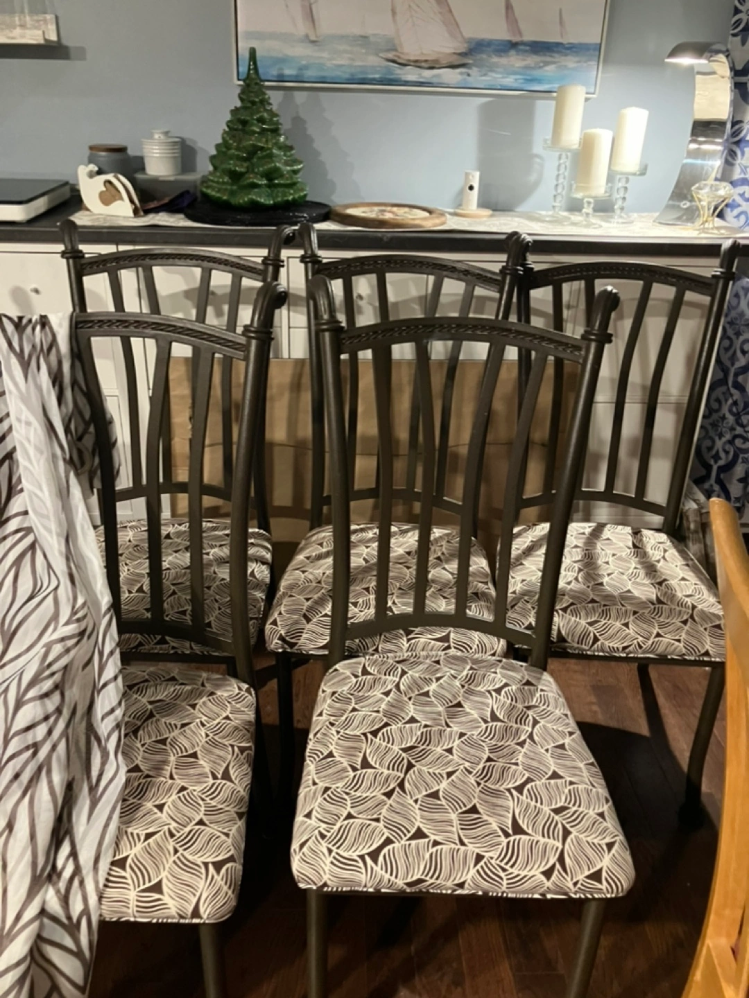 HomeBuy and sellSix Metal Dining Chairs with Leaf-Pattern CushionsKarenFrenchvale50 reviewsSoldSix Metal Dining Chairs with Leaf-Pattern CushionsFurniture · $120Set of six dining chairs. Metal frame. Brown and white leaf patterned cushions. Good condition. See co ordinating sheets.Where to meetSeaview Golf & Country Club0 chats·0 favourites·46 viewsGet the Karrot appOther listings by KarenReversible insulated rain coat$50Frenchvale