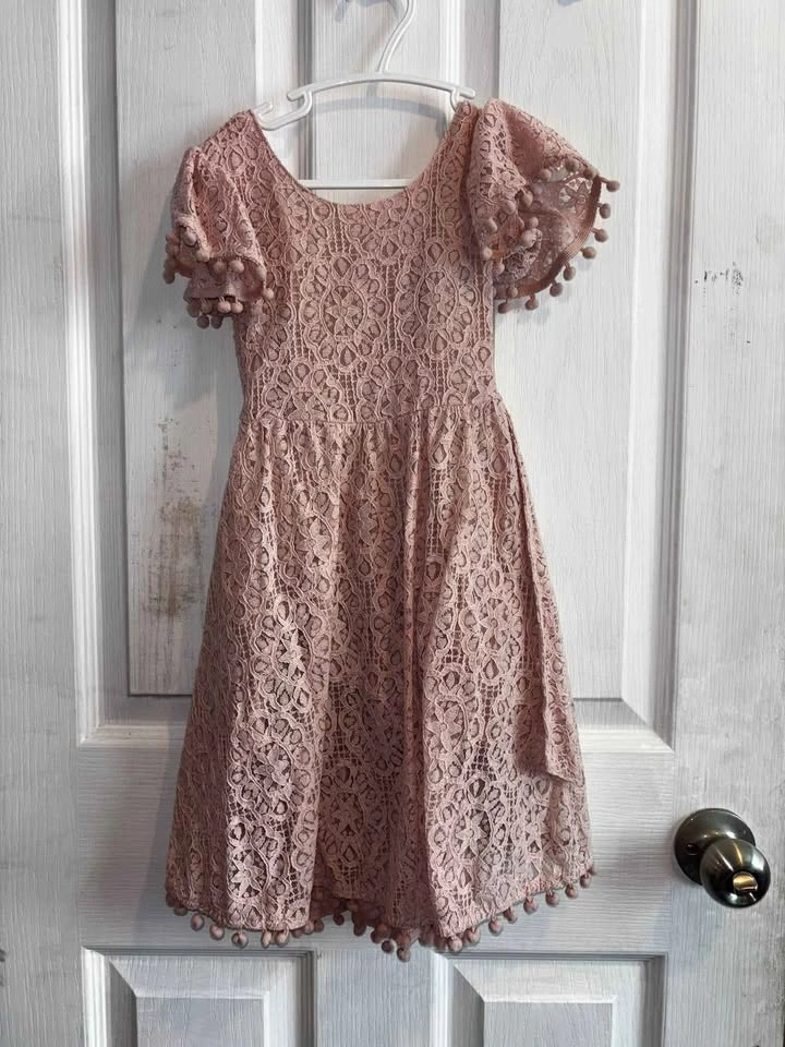 Perfect for toddlers aged around 3โ4 years ๐ธ Beautiful floral lace overlay ๐ Pom-pom detail on sleeves and hem ๐ซ Fully lined, soft and comfy ๐ Adorable open-back style ๐ Perfect for birthdays, weddings, photoshoots Asking: $15 Retail: ~$35+ ๐ Brand new, never worn Pickup in Mission