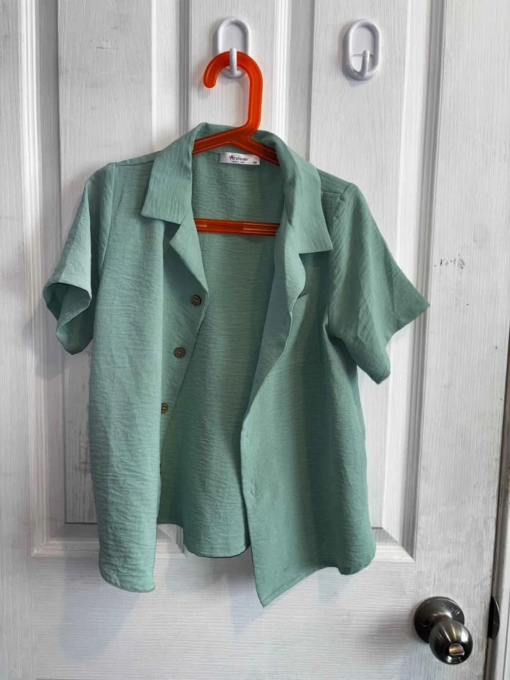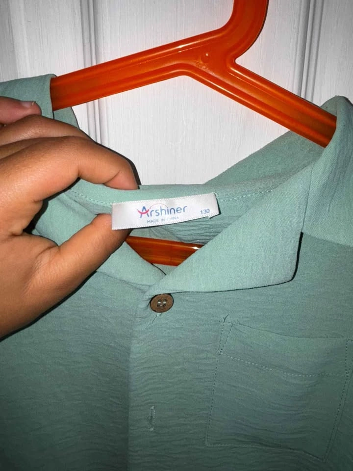Size 130 (Youth) ๐ฟ โจ Brand new, never worn โจ Stylish 2-piece set by Arshiner โ light sage green button-up shirt with matching elastic-waist shorts. Perfect for summer outings, casual wear, or a comfy day at home. ๐ฒ Price: $15 set (shirt + shorts) ๐ Pickup in Mission