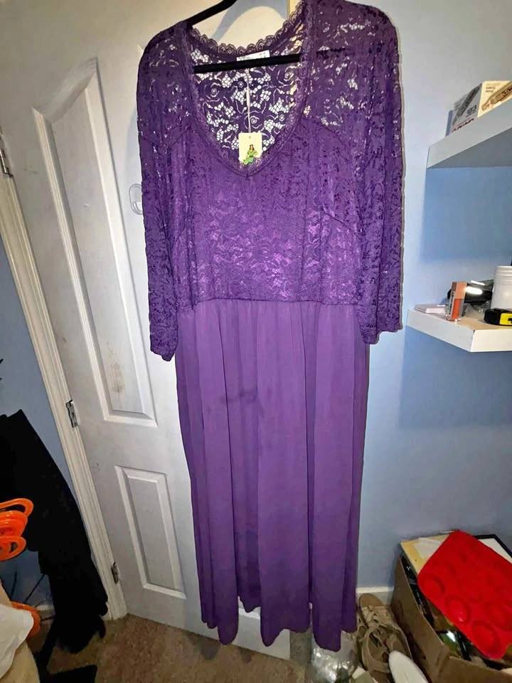 ๐Ÿ‘— Size 26 (US Plus) ๐Ÿ‘— Brand: Nemidor (new with tag) Design: Elegant purple lace bodice with delicate sheer sleeves + flowing chiffon skirt Style: Lace overlay and chiffon comboโ€”perfect for weddings, parties, and special occasions Condition: Brand New, Never Worn Original Retail Price: โ‰ˆ $50 ๐Ÿ’ฒ Asking Price: $25 ๐Ÿ“ Pickup in Mission ๐Ÿ™ Browse my other great deals under #TinyPriceMission