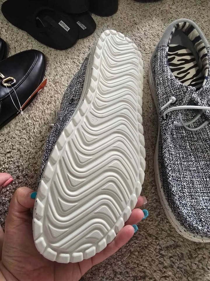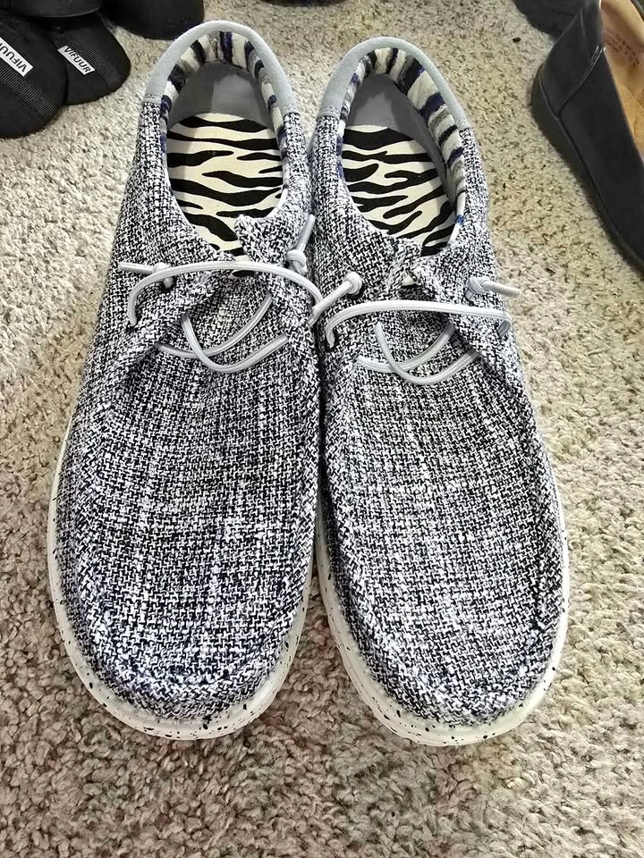 Step out in comfort and style with these brand new size 45 knit sneakers featuring a trendy speckled black and white weave and a unique zebra print insole. Designed for lightweight all-day wear with soft padding and a flexible rubber sole for extra grip. Great for both men and women. โ Brand new ๐ Size: EU 45 (fits US Men's 11-11.5 approx.) ๐ฏ Stylish zebra-print lining ๐งผ Clean white outsoles ๐ฅ Sleek slip-on look with laces ๐ธ Asking: $25 Retail: $45+ ๐ Pickup in Mission