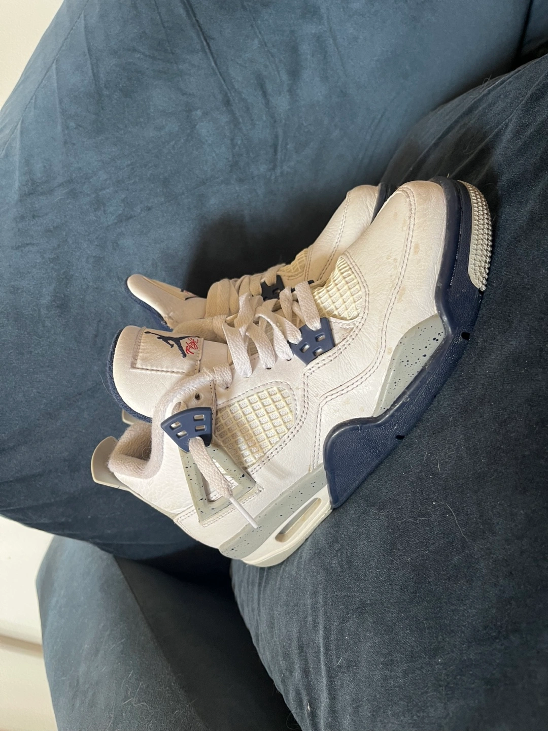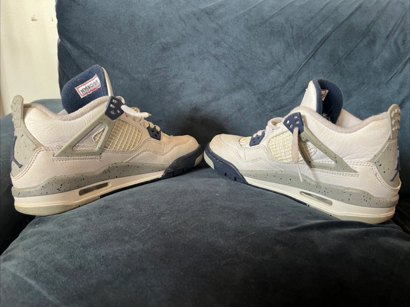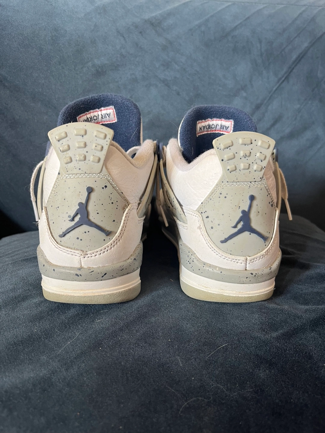 Selling a pair of Air Jordan 4 Retro Cement sneakers! They're in great condition, barely worn. Size 5.5Y