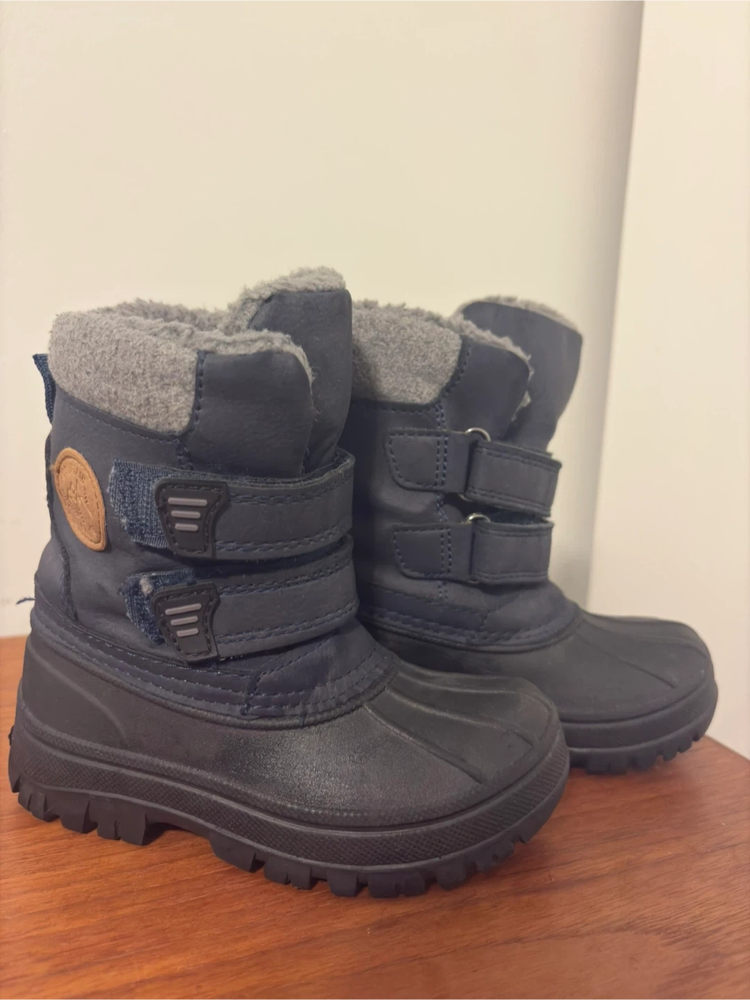 Selling a pair of kids' winter boots in size 8. They are a nice navy blue colour and they're in good condition. Perfect for keeping little feet warm and dry this winter!