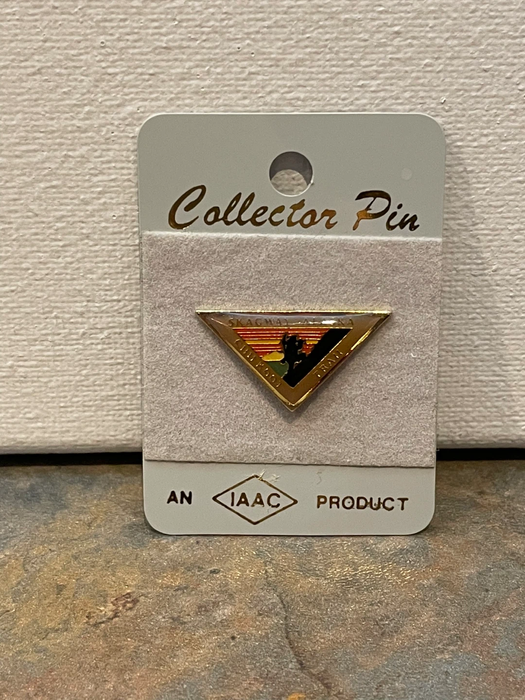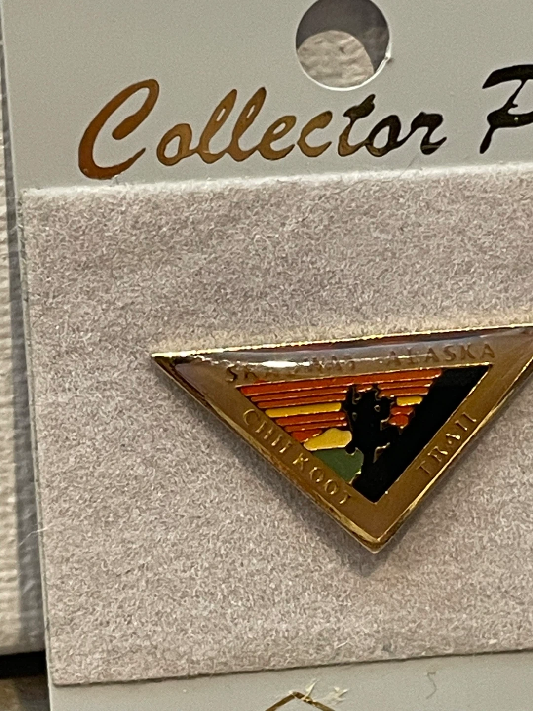 Vintage Skagway Alaska Chilkoot Trail Travel Souvenir Gold Tone Enameled Clutch Back Lapel Pin. New on original plastic card, purchased in early 1990s. * Pre-owned in excellent condition * No chips or cracks in enamel * Measures 39mm across * Unmarked Pick up in East Kildonan, cash please
