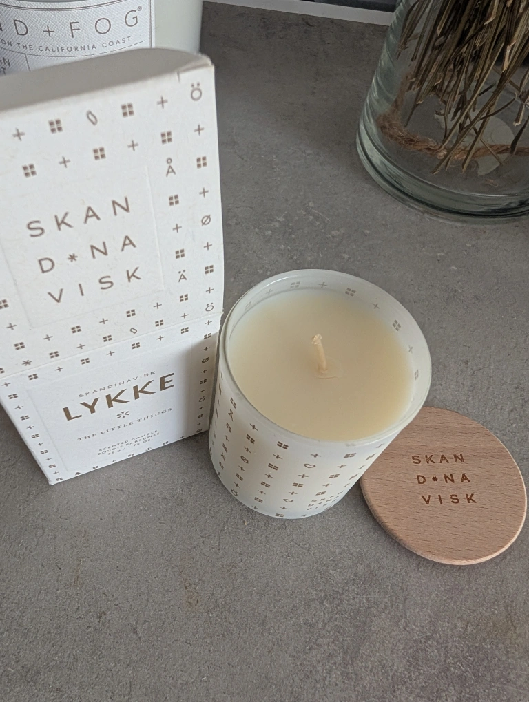 Selling a Skandinavisk Lykke scented candle. It's a lovely candle that smells like spring snowdrops, lemon nettle and apple mint (this is from the package). This 1.95 oz candle burns for 16 hours. Designed in Denmark, made in France. Available individually or sold as a lot with other listings.