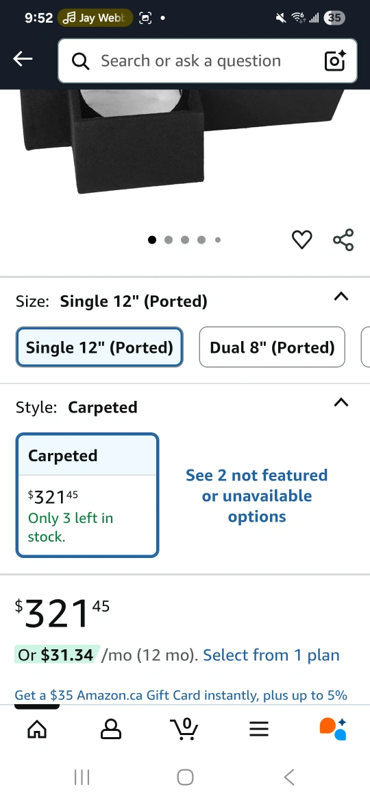 Selling a Skar Audio single 12" ported subwoofer enclosure. It's compatible with 2019-2025 Ram Crew Cab Trucks. It is carpeted and in good condition!