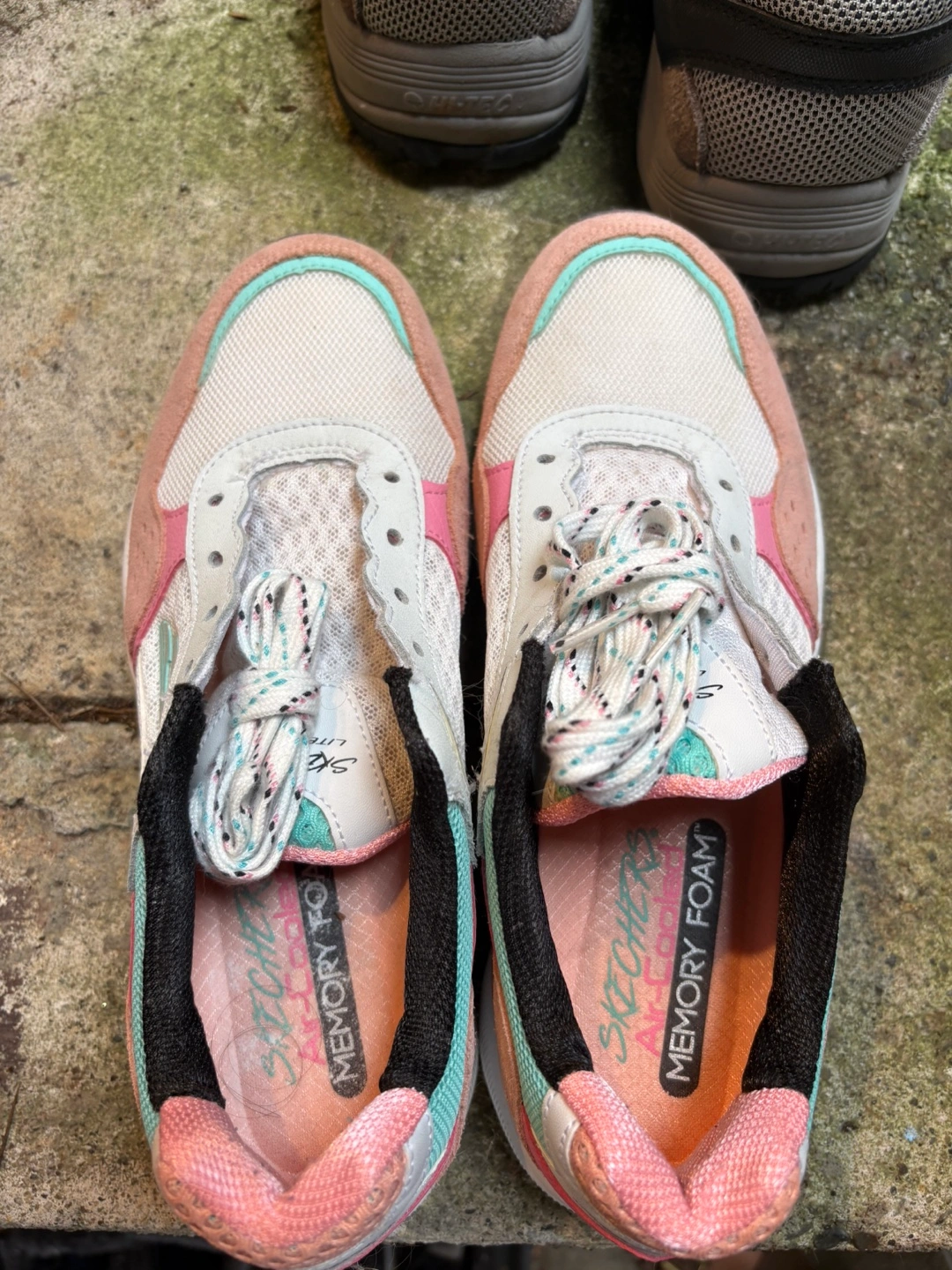 Selling a pair of Skechers Memory Foam shoes in size 9. They show some signs of wear, but still have lots of life left! The colour code is WPKB.