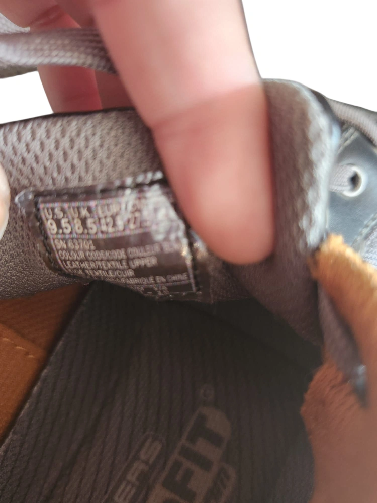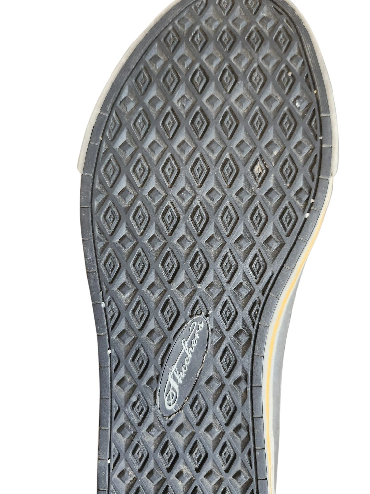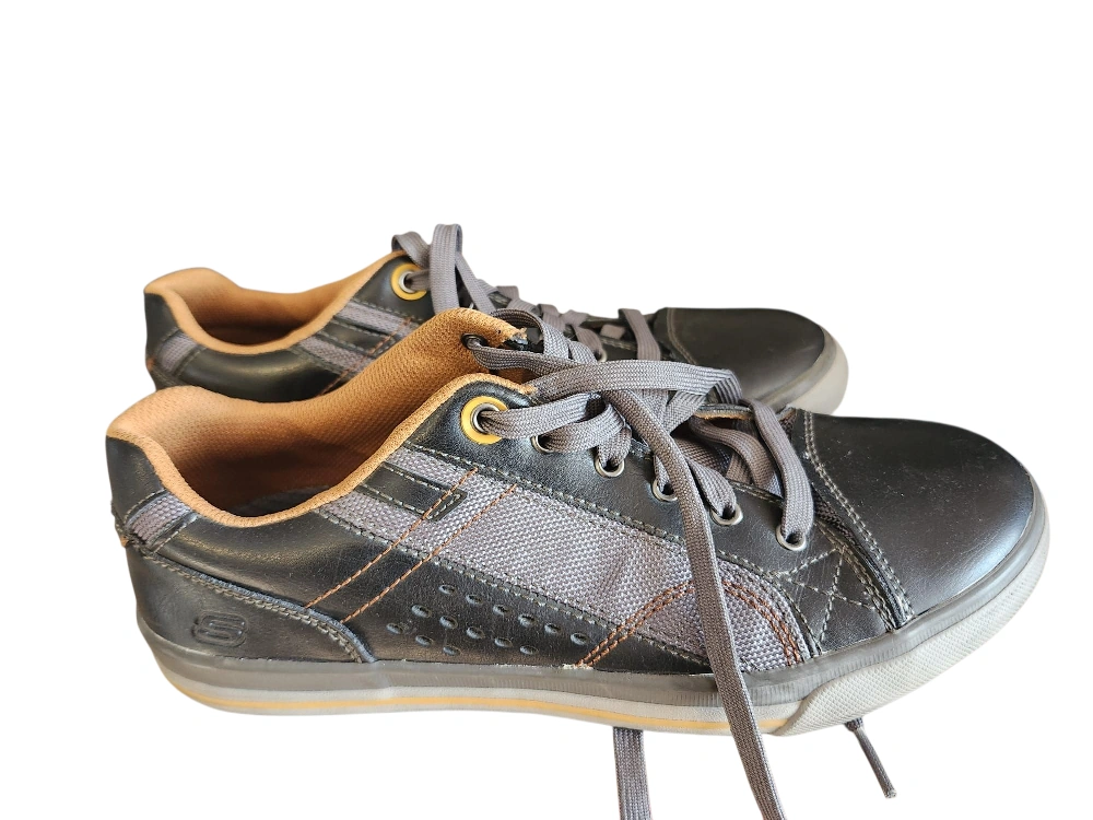 Selling a pair of Skechers sneakers in men's size 9.5. They feature a leather/textile upper and are in good condition. The colour code is GRLLE/BLK.