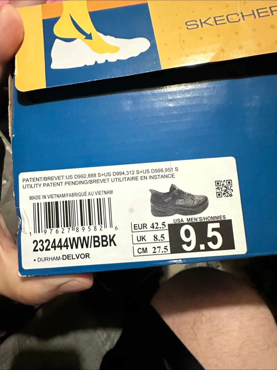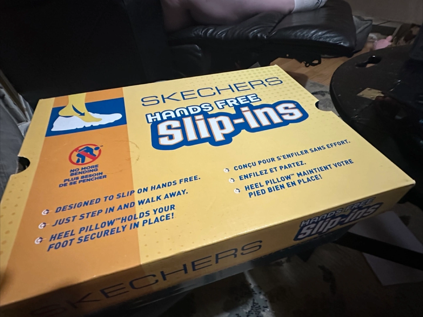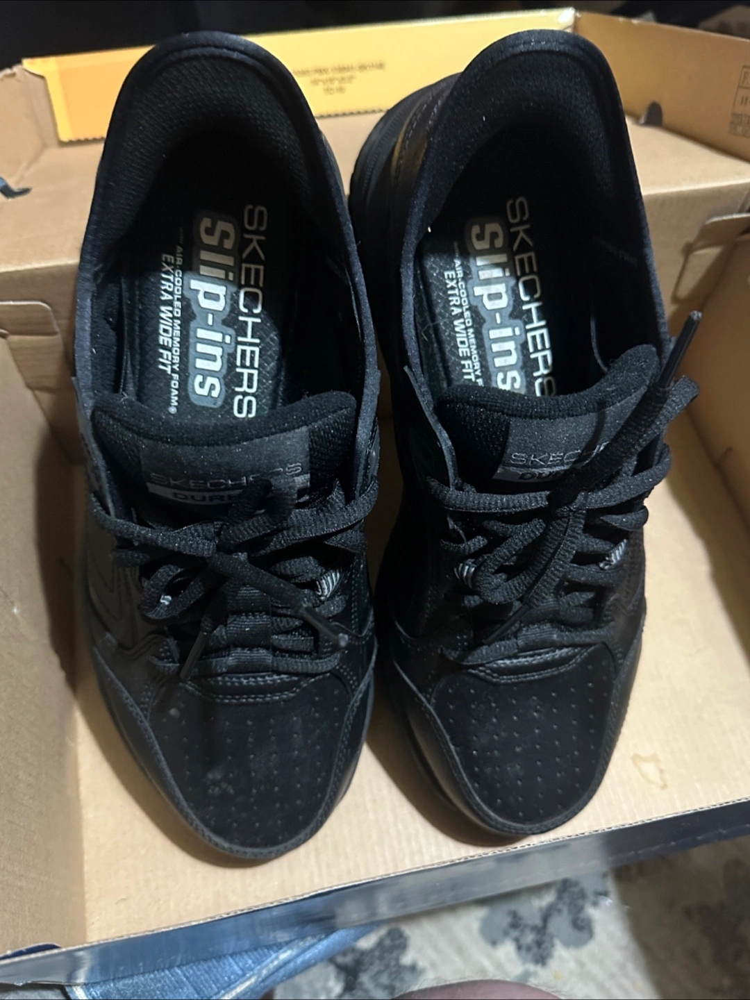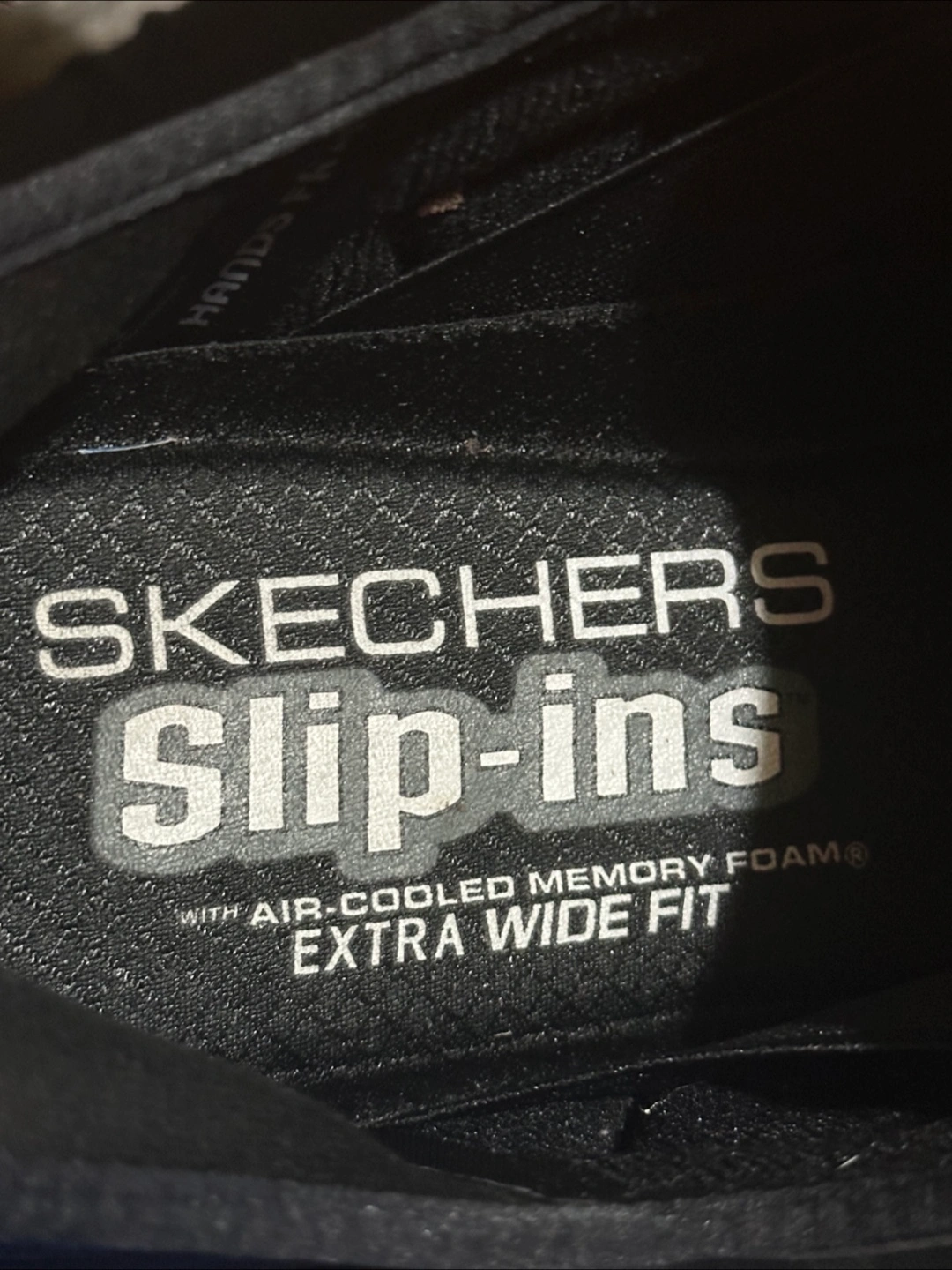 Selling a pair of Skechers Slip-ins in men's size 9.5! These are extra wide fit and feature air-cooled memory foam for extra comfort. They are black and designed to slip on and walk away. The heel pillow holds your foot securely in place. Comes with the original box. In midland