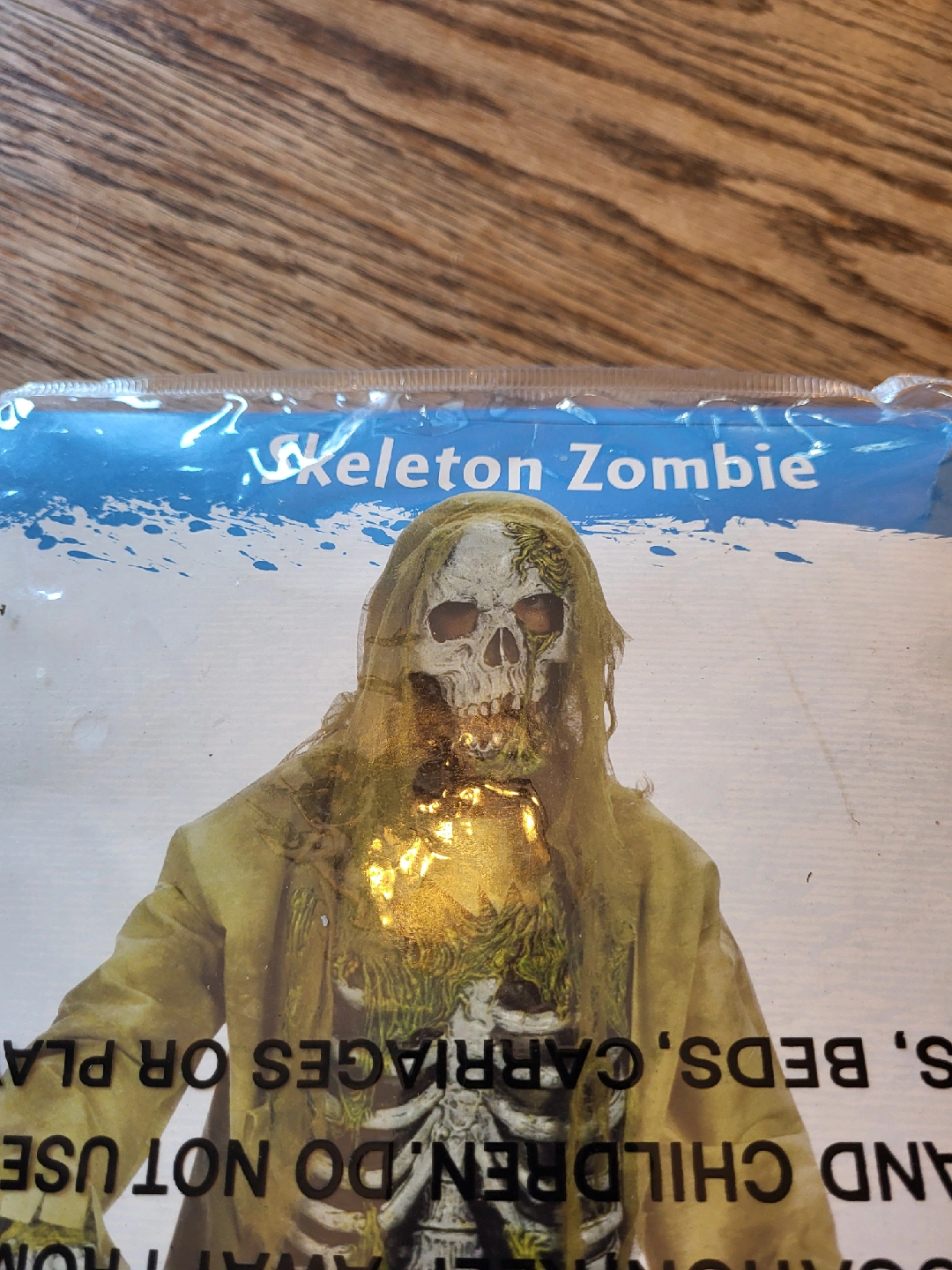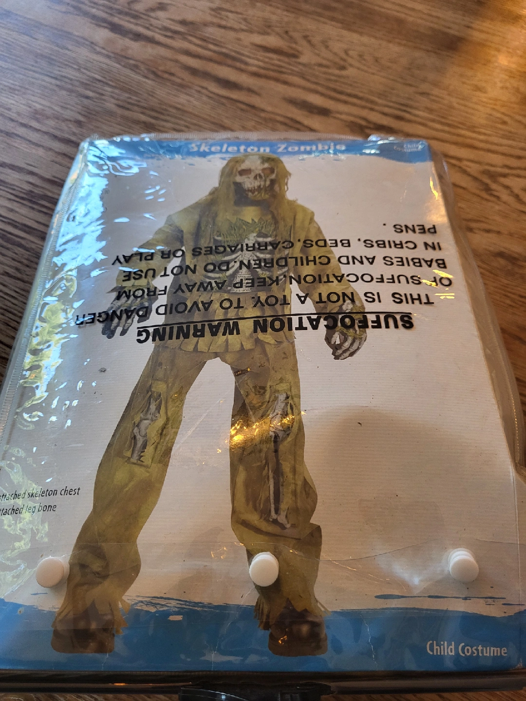 Selling a Skeleton Zombie child costume. It features an attached skeleton chest and attached leg bone. Great for Halloween or dress-up!