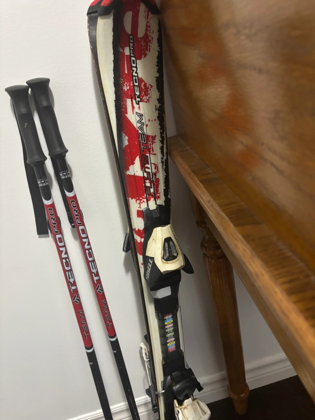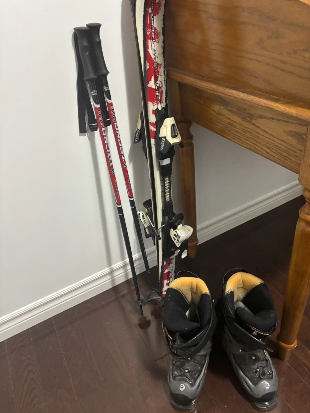Selling a pair of skis and ski boots, size 23.5. They're in used condition but still have lots of life left in them. Perfect for hitting the slopes this winter!