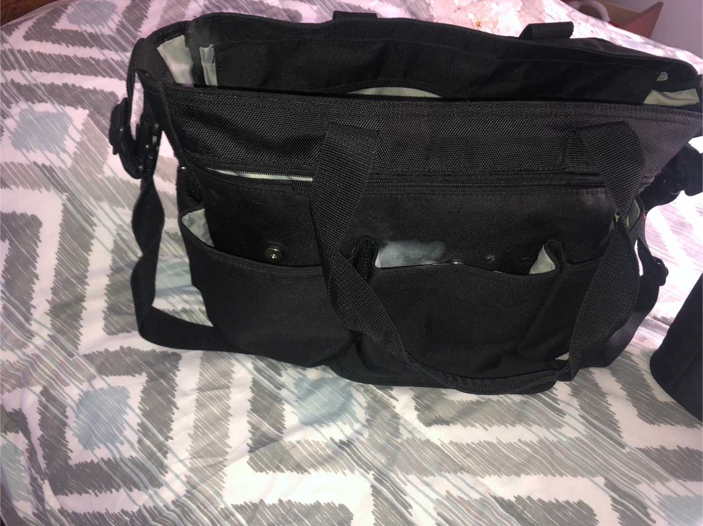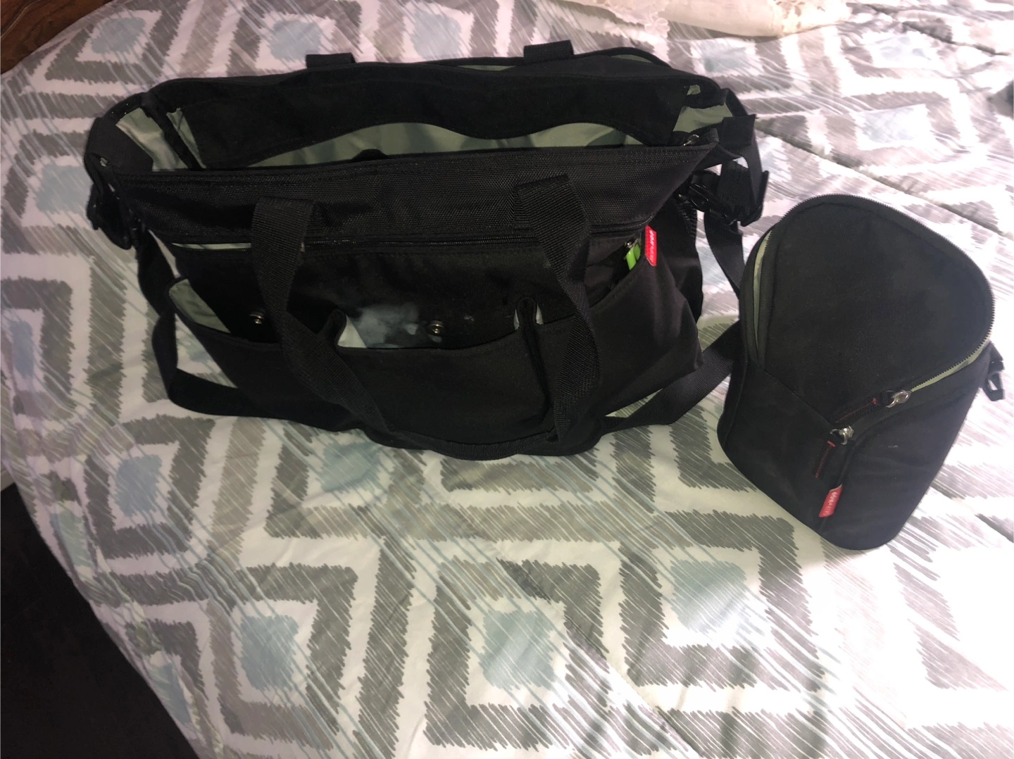 Selling a Skip Hop diaper bag in black! It comes with a separate insulated bottle bag. The main bag has lots of pockets and compartments to keep everything organized. It's in great condition and ready for a new home bag $10 bottle bag $5