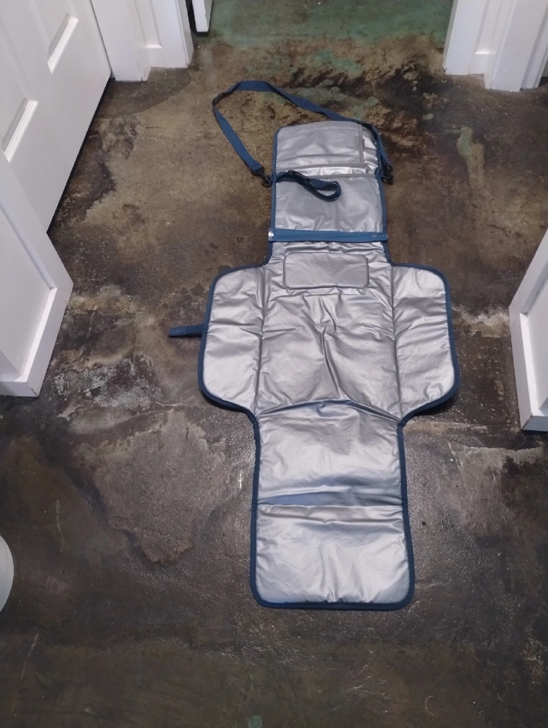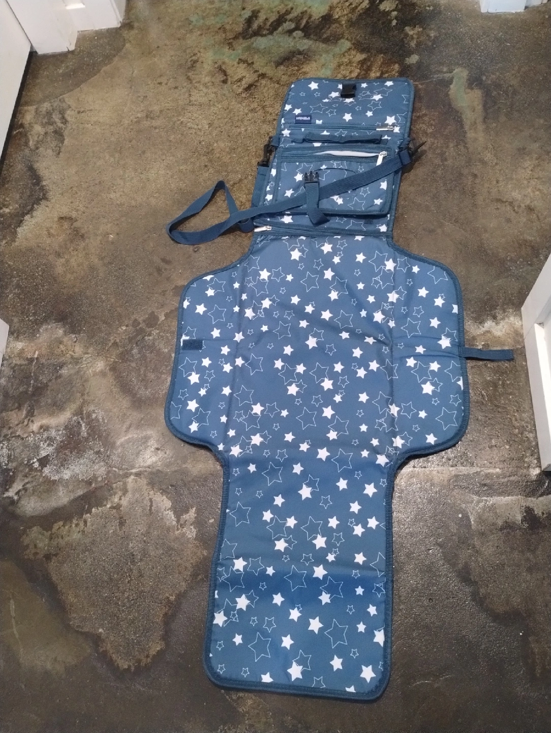 This Skip Hop changing station clutch is in excellent condition! It's perfect for on-the-go diaper changes. One side is a wipeable changing pad, and the other side has pockets for diapers and wipes. It folds up neatly and has a strap for easy carrying. Super convenient and easy to clean!