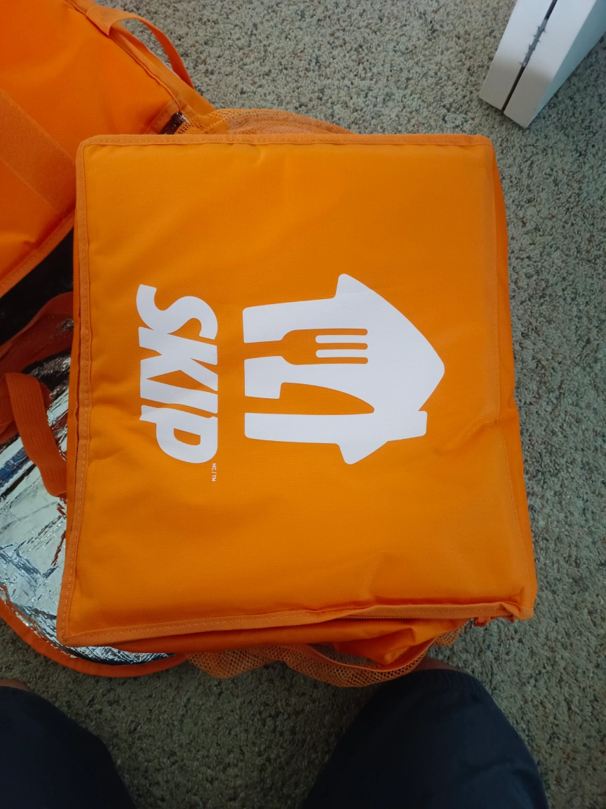 Keep your deliveries hot (or cold!) with this Skip The Dishes insulated bag. Perfect for food delivery or keeping your groceries fresh. It's in great condition and ready to go