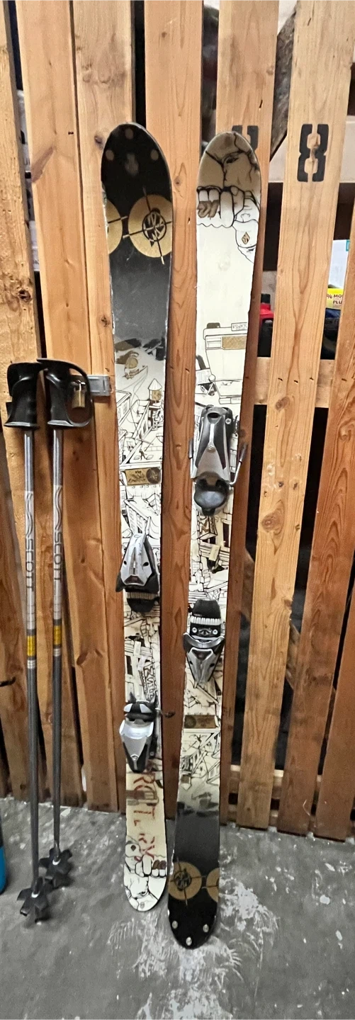 Selling a pair of skis and poles. They have a unique design and are ready for the slopes! 160-170cm