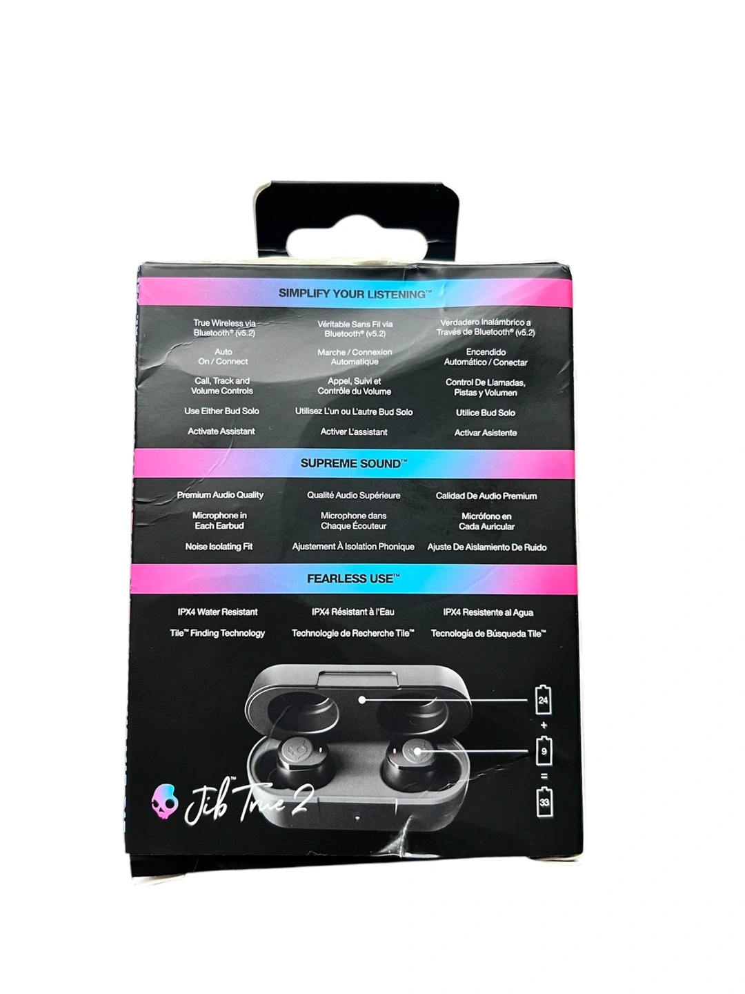 Totally wireless earbuds. Premium audio quality. IPX4 water resistant. Includes charging case. Tile finding technology.