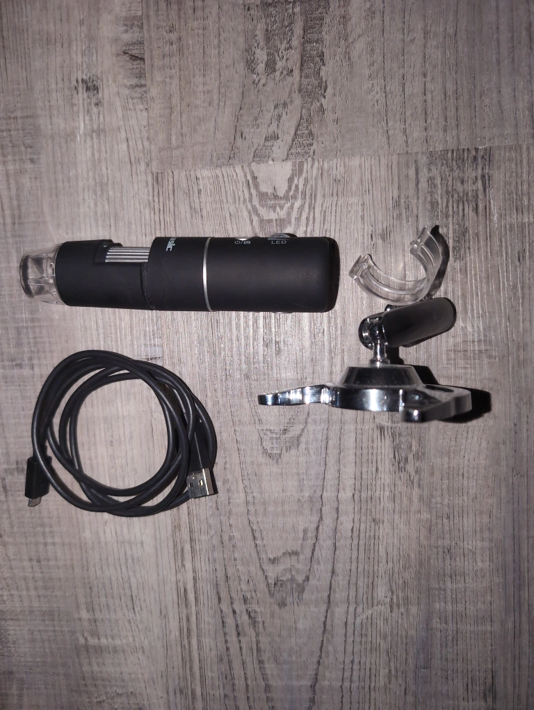 Selling a kids Skybasic digital USB microscope! It's in great condition and comes with all the components you see in the pictures, including the stand and USB cable.