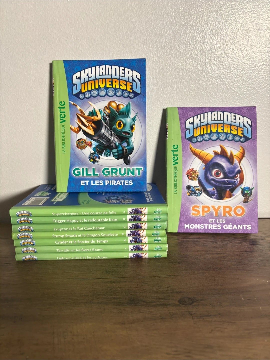Step into the Skylands with this set of 9 French-language Skylanders Universe books, perfect for fans and collectors alike! Details: • Language: French • Quantity: Set of 9 books • Condition: Like new – clean pages, no markings, gently handled Price: $10 per book so $90 for all. (Selling as a complete set only – cannot be split) Cash or e-transfer on the spot is accepted. Pick up in NDG.
