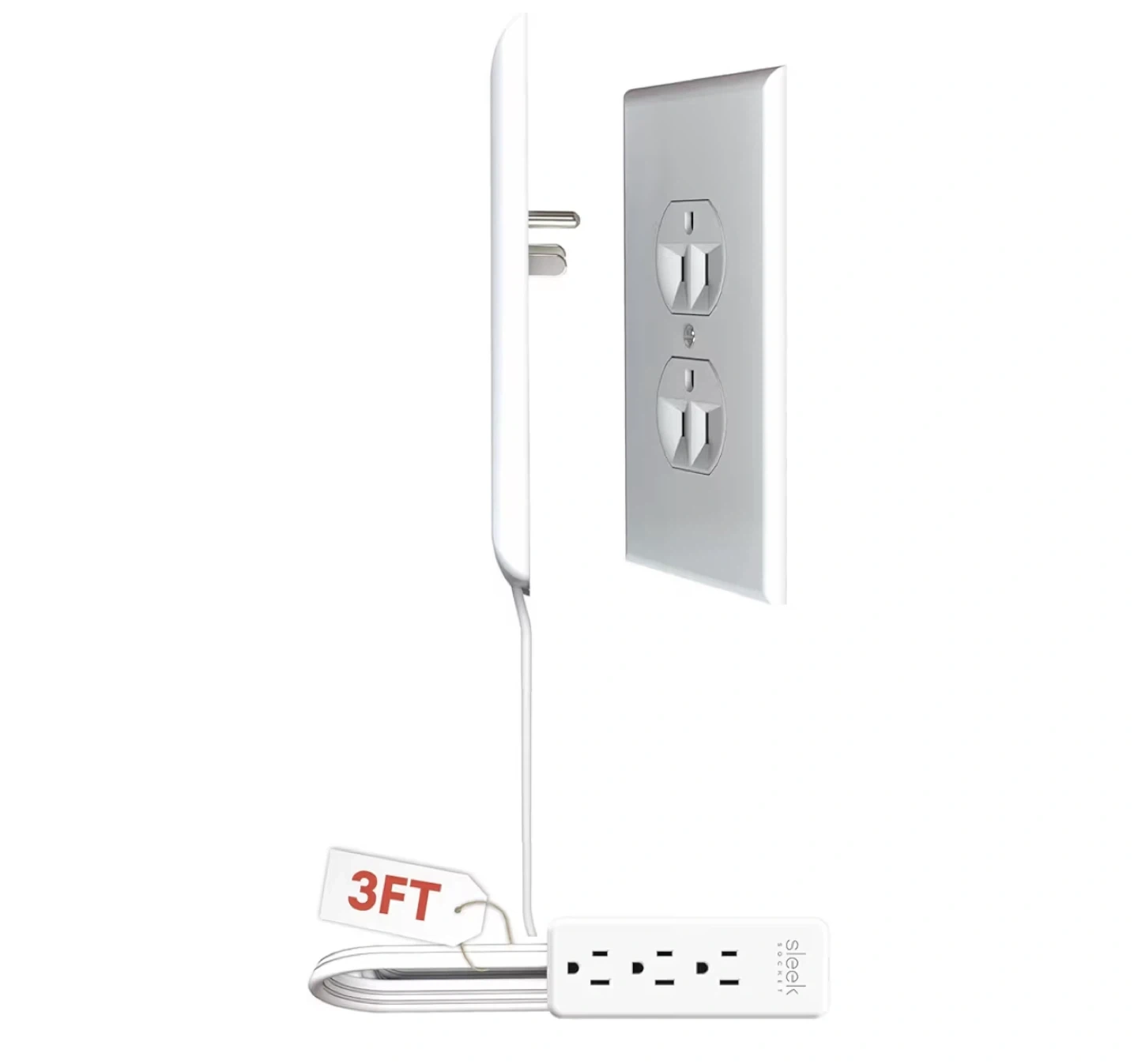 Keep your space tidy with a Sleek Socket! This universal outlet concealer and cord management kit is perfect for hiding unsightly cords and plugs. - Includes adhesive cord management kit - Fits all inverted duplex outlet sizes - 3-foot, 3 outlet power strip