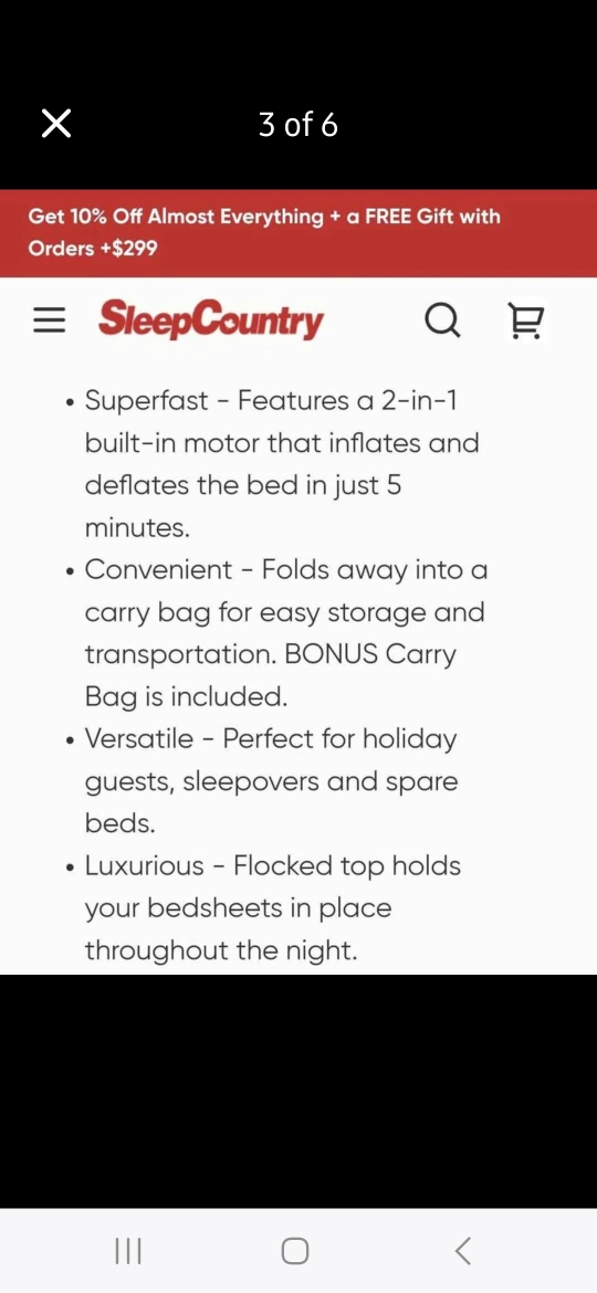 Looking to sell a Sleep Country Yawn Air Bed in full size! This air bed is your luxury portable bedding solution. It has incredible Comfort Support Technology and a powerful built-in pump. It combines the convenience of an air bed with the luxurious feel and comfort of a real bed for a perfect night's sleep. It also includes a specially designed fitted sheet for even more comfort and convenience! Dimensions are 85.03"L x 53.14"W x 33.46"H *NEW IN SEALED BOX!