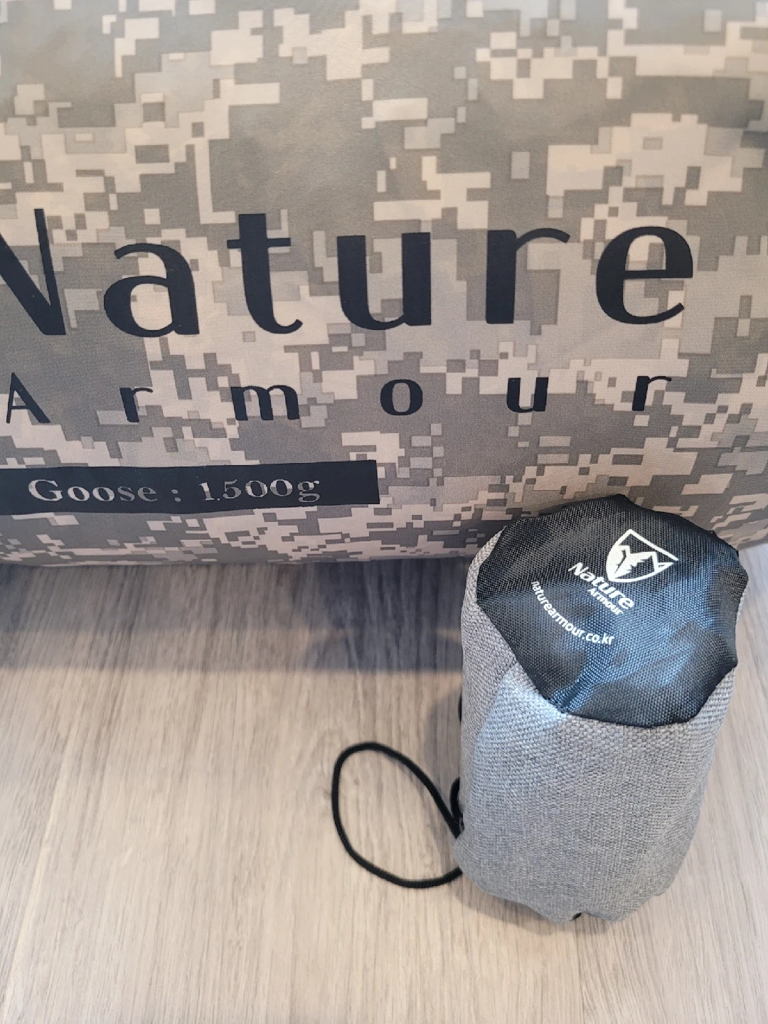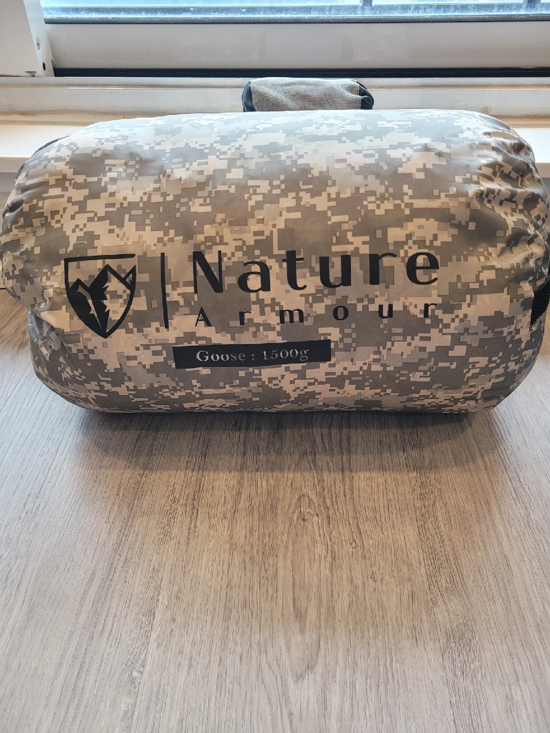 Nature armour 100% Goose Sleeping Bag and an Air Pilllow together ! Backpacking Blanket Made in Korea It's in great shape almost new and ready for your next camping trip. The bag contains 1500g of goose down. https://www.ebay.ca/itm/364517867853