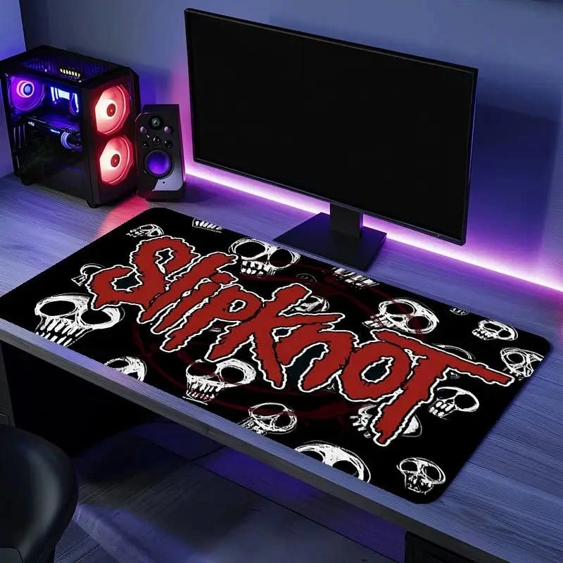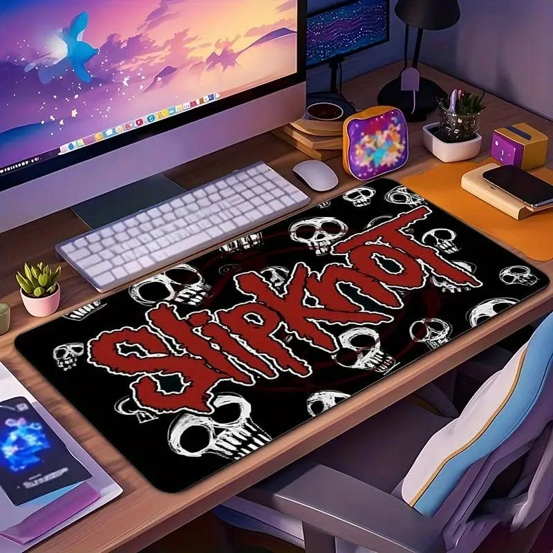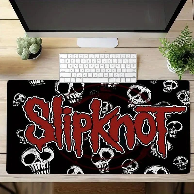 Slipknot Gaming Mouse Pad - Extra Large Non-Slip Surface, Heavy Duty Rubber Base , Gothic Heavy Metal Band Design (Skulls, Red Lettering) - for PC, Office, Gaming Desk -