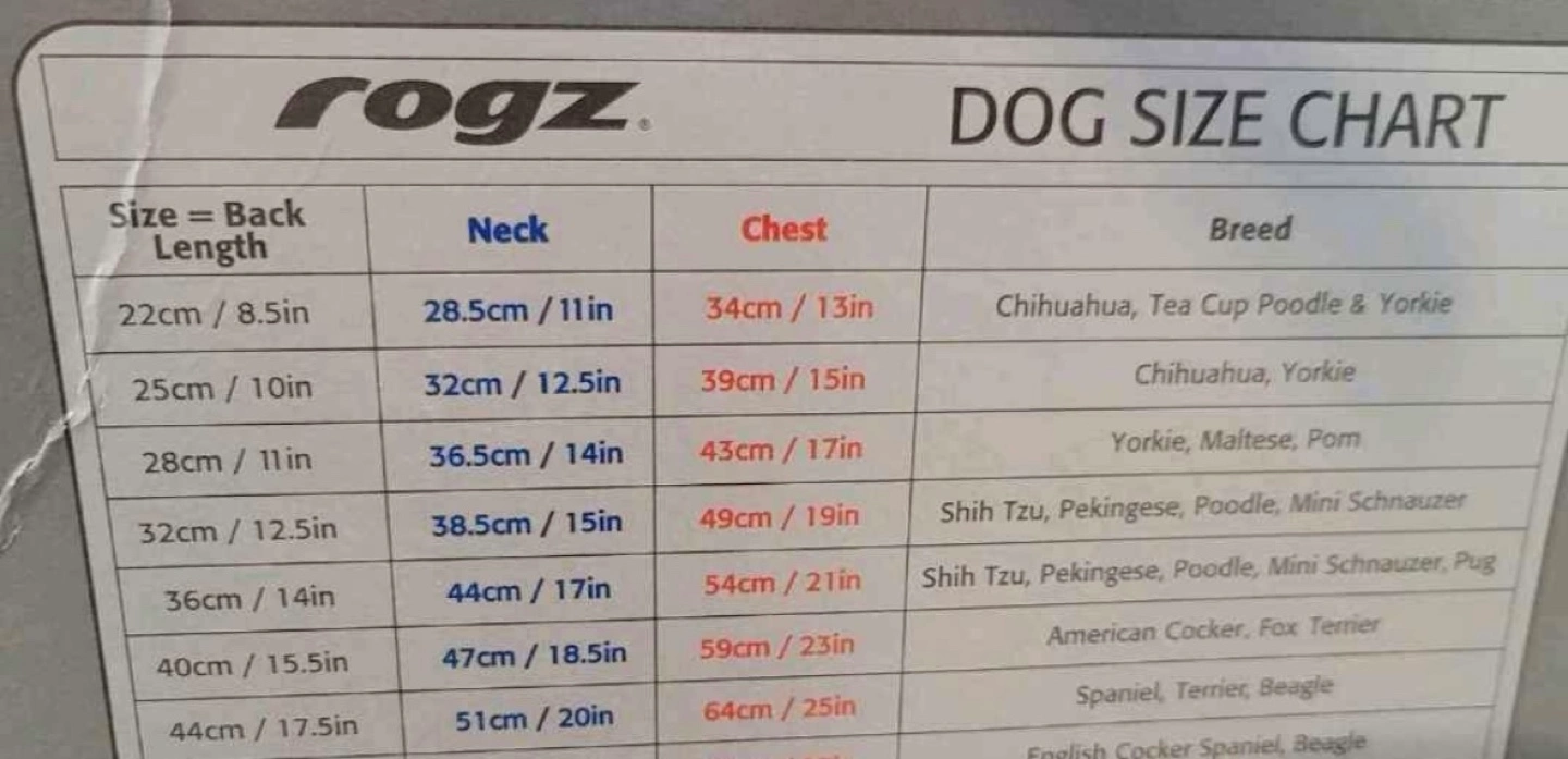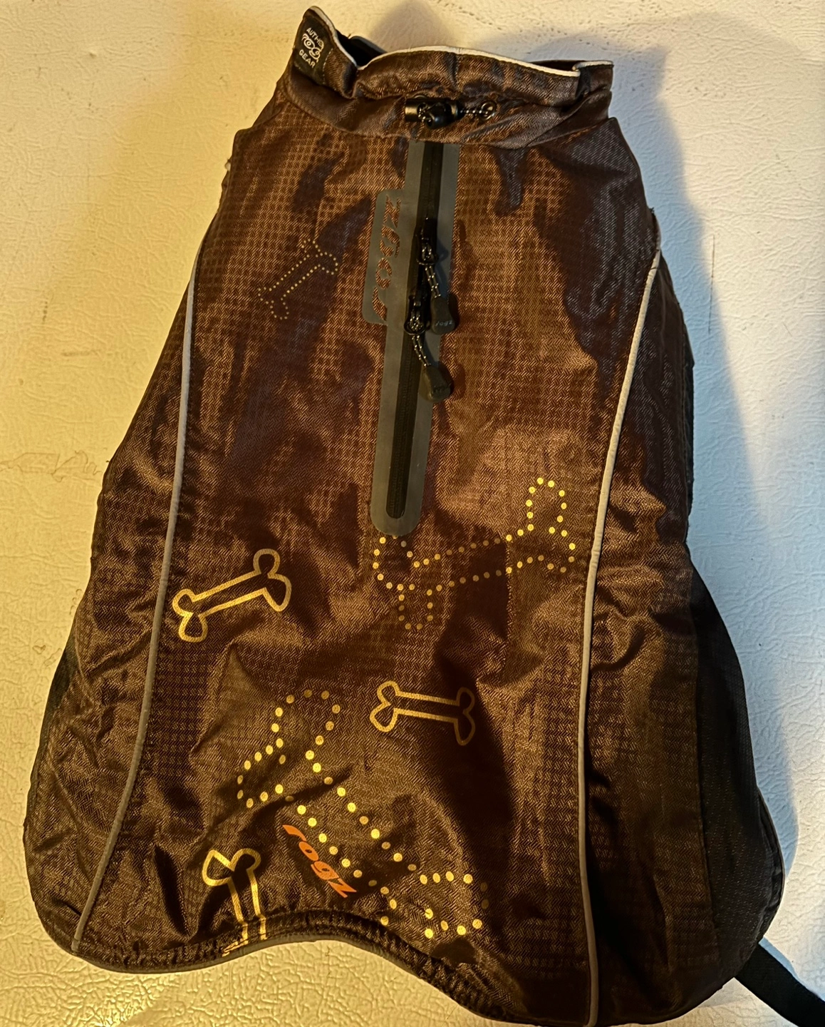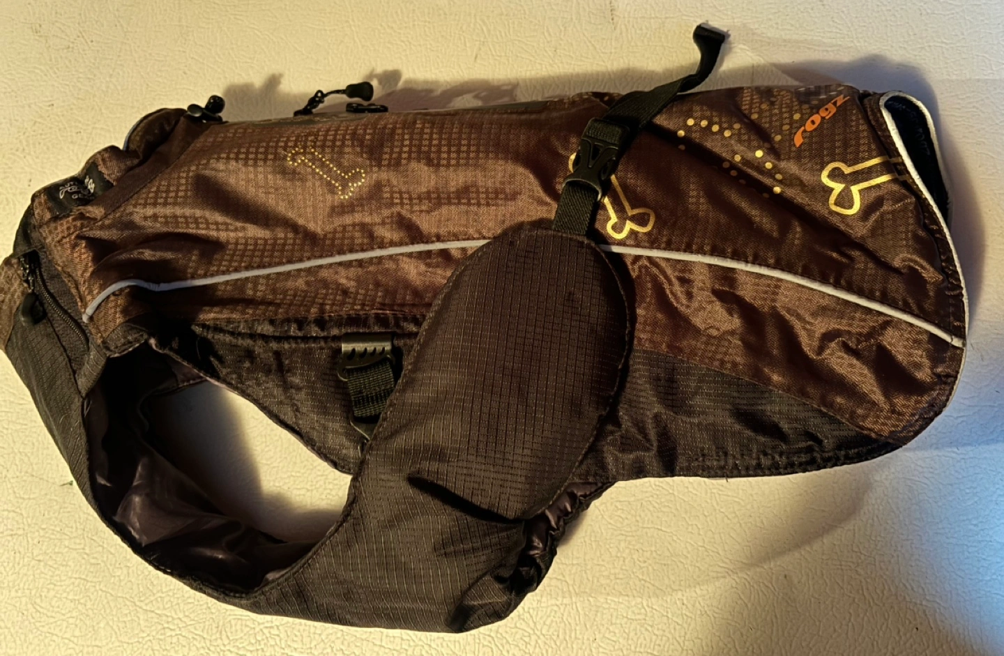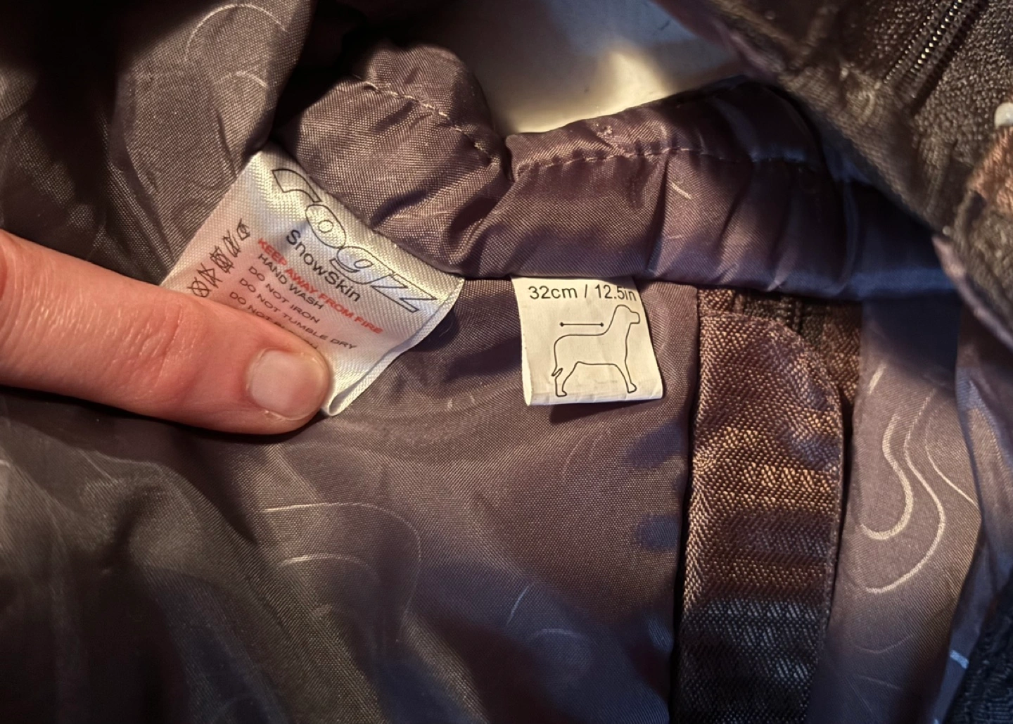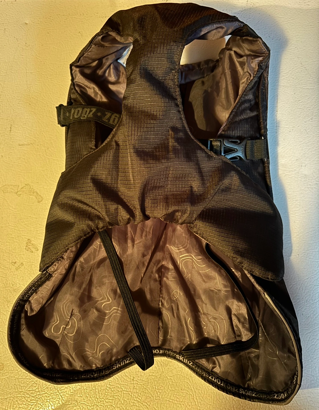 Extremely warm winter dog parka. Rogz SnowSkin size 12.5”. See picture for sizing chart! Features a zippered opening for harness/leash and adjustable straps. Sadly, it doesn’t fit my dog. This super thermal garment is perfect for those really cold days that demand extra covering during walkies.