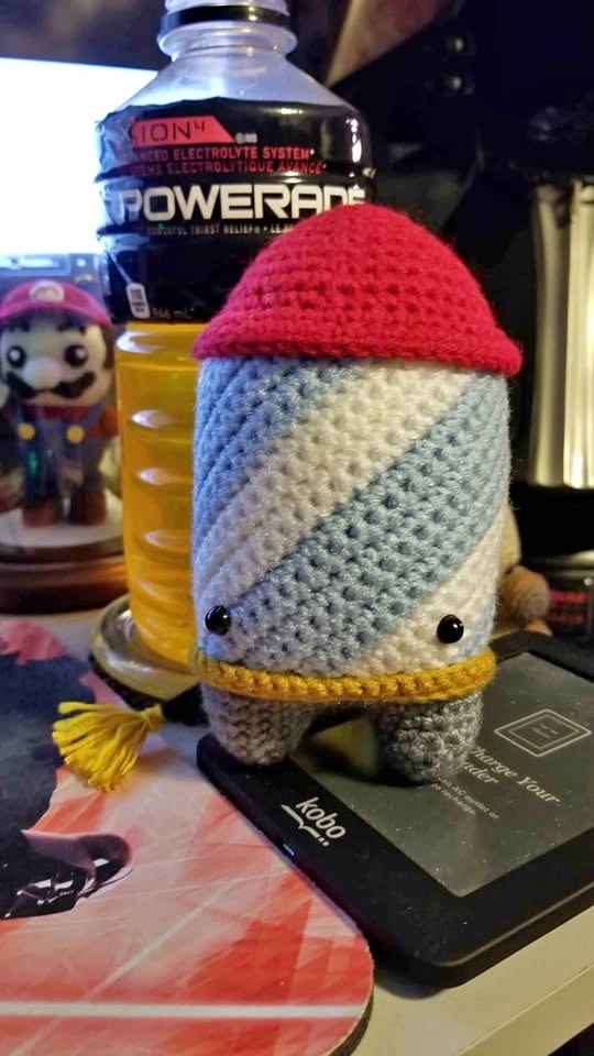 All of my crocheted pieces are handmade by myself using acrylic, cotton, wool or a mixture of any of them. If you would like specifics about a certain piece please ask. All items are priced very fairly at $5.00/hour of work put into it plus materials. Most have safety eyes which are basically impossible to remove so they are safe for children but some have stitched buttons, it should be obvious but again feel free to message me for specifics.