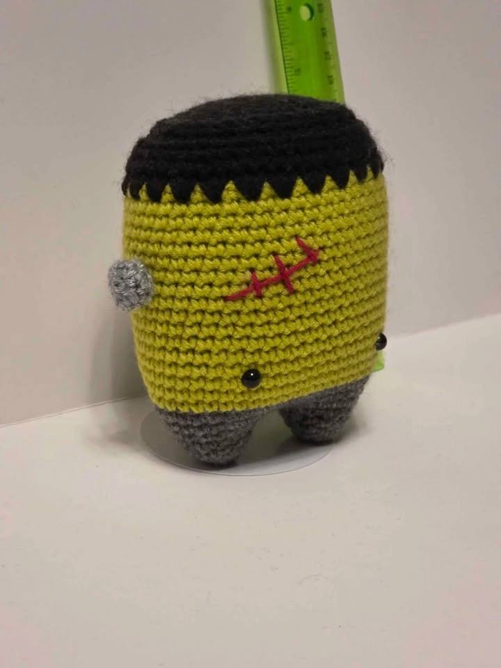 All of my crocheted pieces are handmade by myself using acrylic, cotton, wool or a mixture of any of them. If you would like specifics about a certain piece please ask. All items are priced very fairly at $5.00/hour of work put into it plus materials. Most have safety eyes which are basically impossible to remove so they are safe for children but some have stitched buttons, it should be obvious but again feel free to message me for specifics.