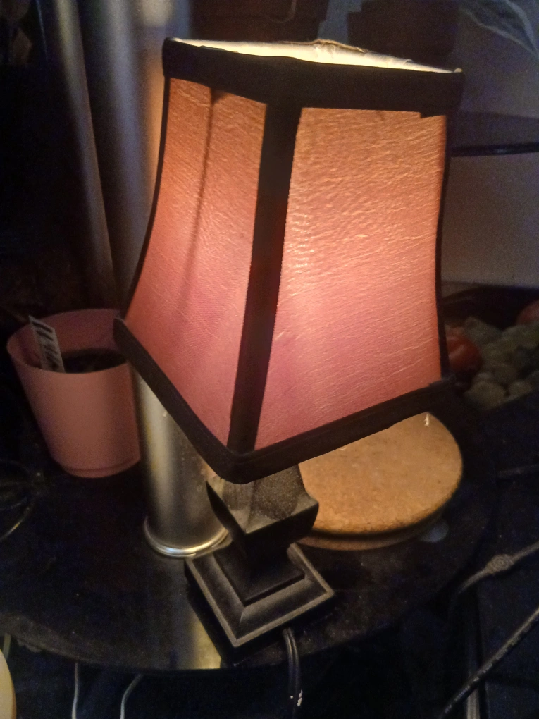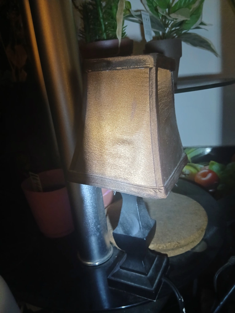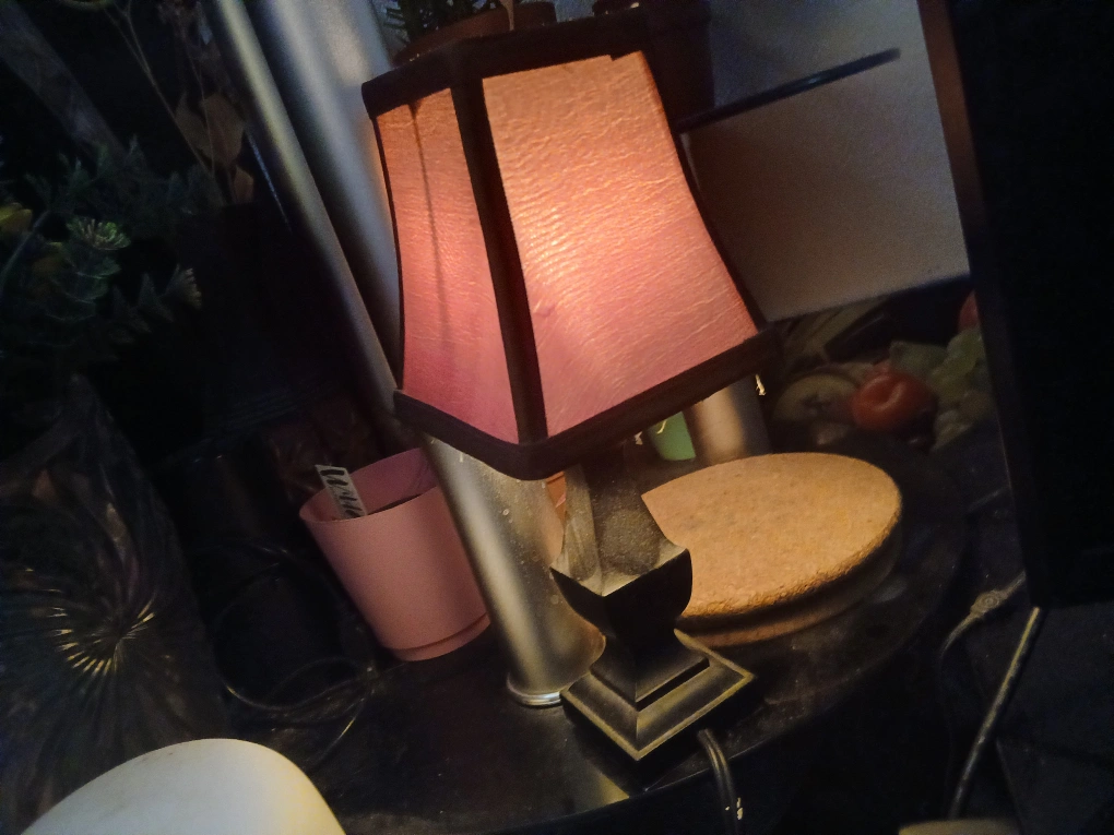 A cute little table lamp with a brown shade. Perfect for a bedside table or small desk. It adds a warm, cozy glow to any room, It's a bit old but i'll clean it before giving it away obviously. light bulb included.